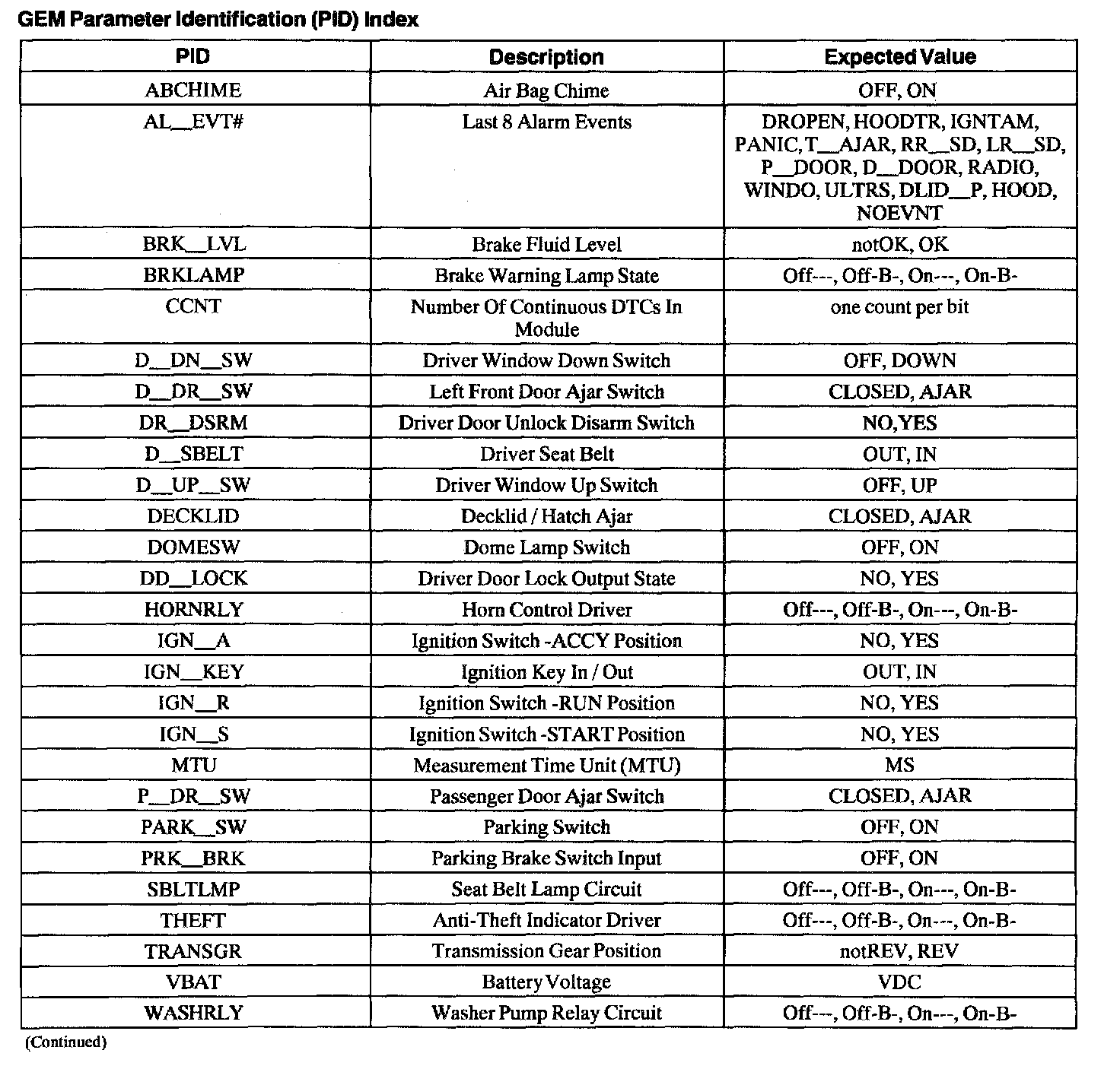 GEM Parameter Identification (PID) Index, Part 1: