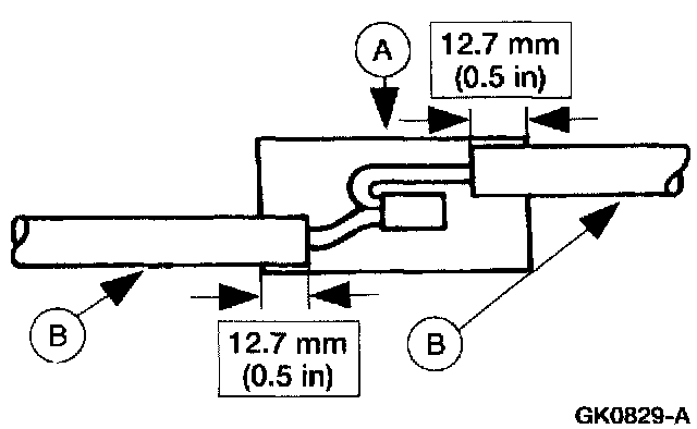 5. Position the (A) heat shrink tube over the (B) wire repair.