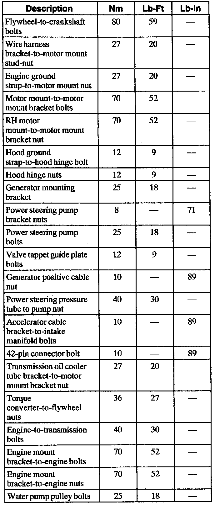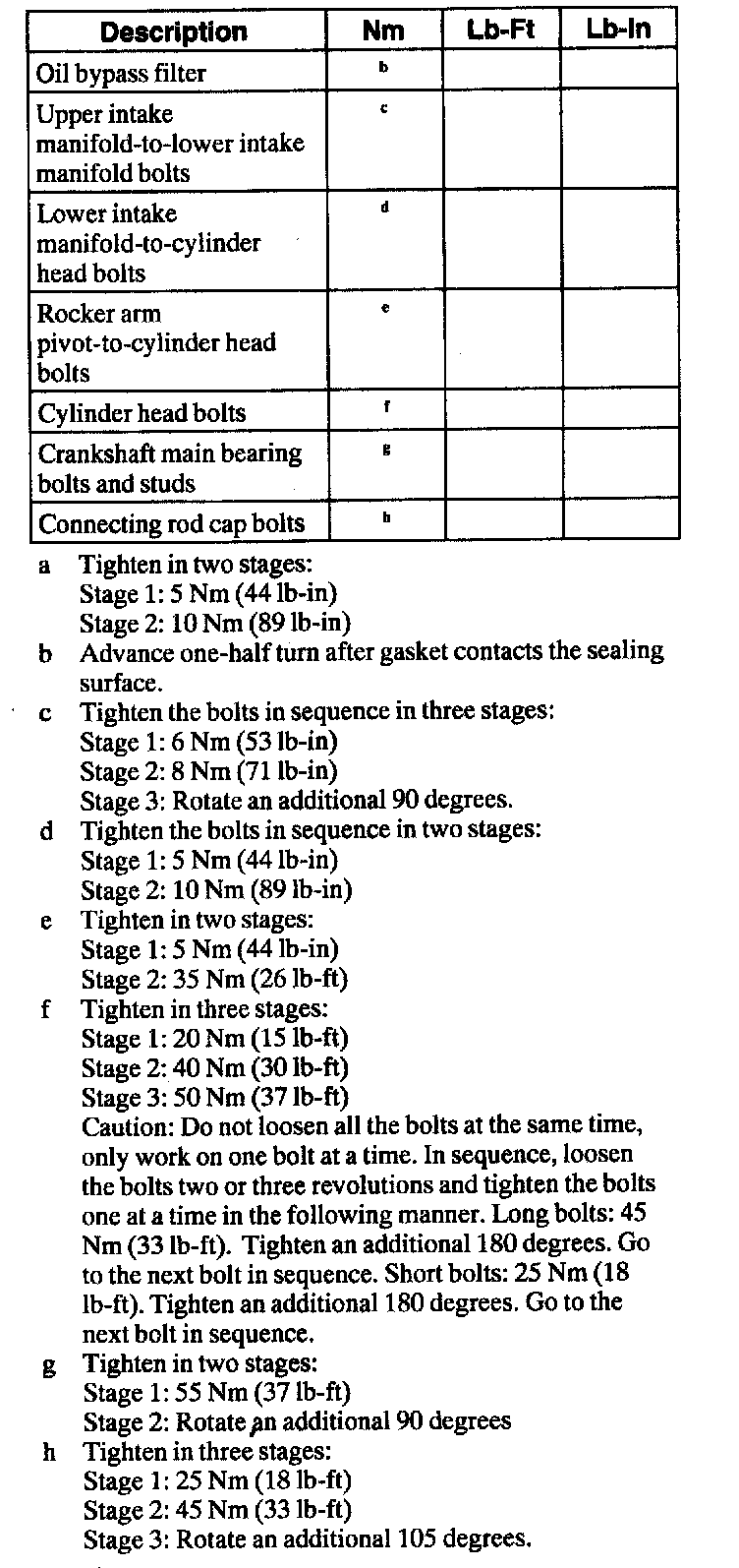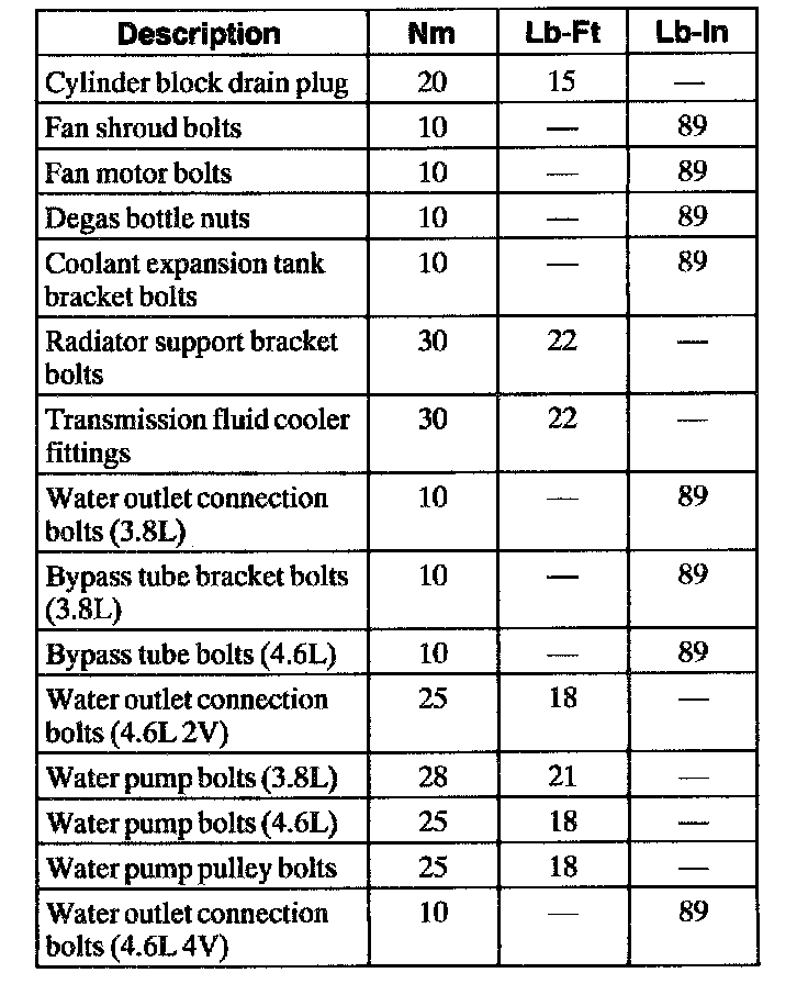 Torque Specifications