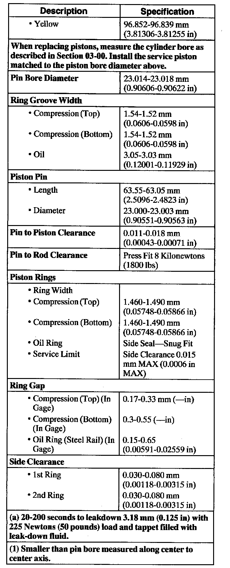 Engine Specifications