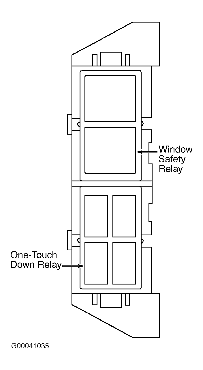 - Turn ignition switch to OFF position. Remove one-touch down relay from relay box 1. See Figure . Check one-touch down relay. Perform ONE-TOUCH DOWN RELAY under COMPONENT TESTS. If one-touch down relay is okay, go to next step. If one-touch down relay is not okay, replace one-touch down relay. Clear DTCs and retest system operation.