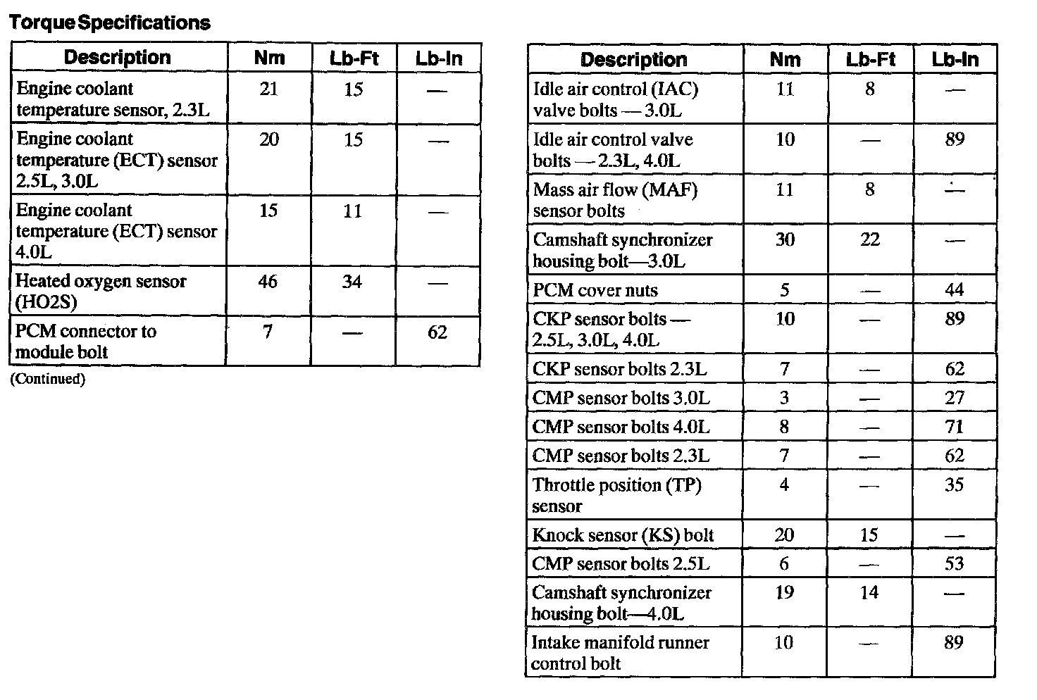Torque Specifications: