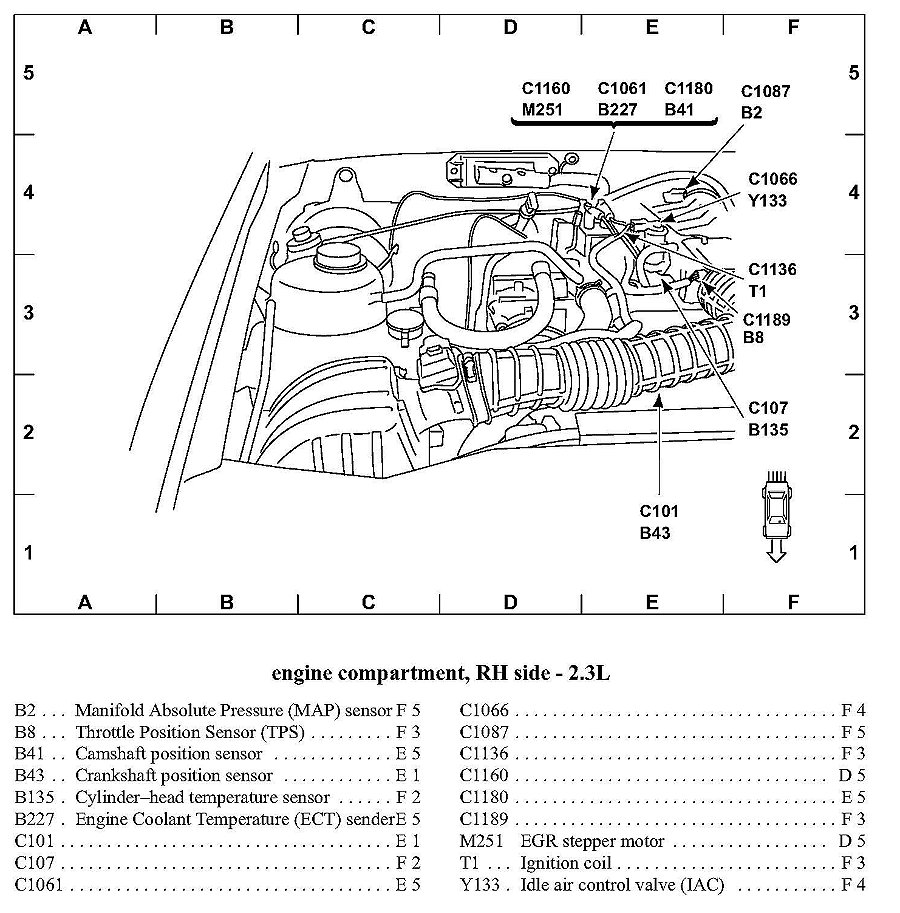 2.3L Engine Compartment, RH Side: