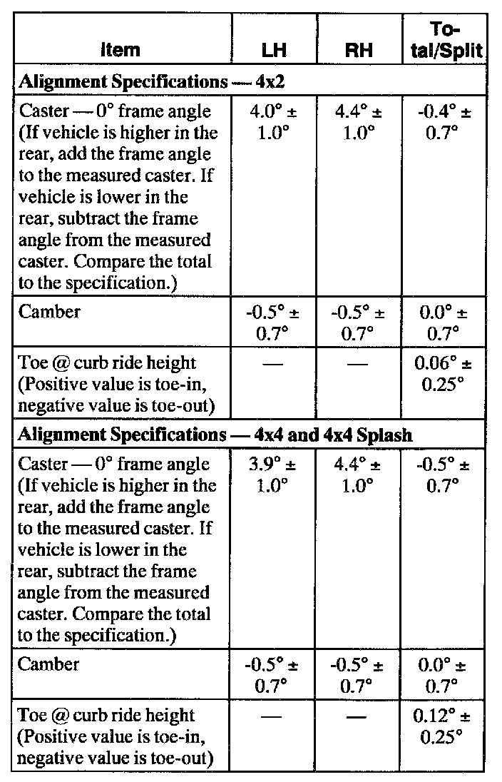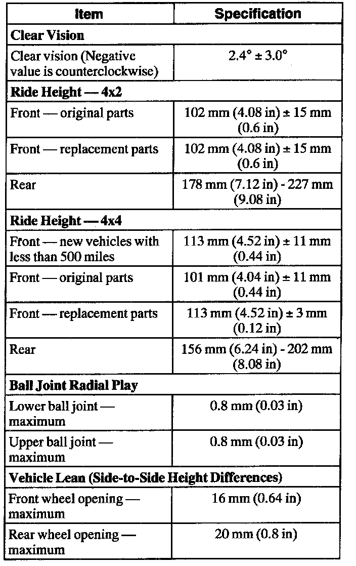 Suspension Systems General Specifications