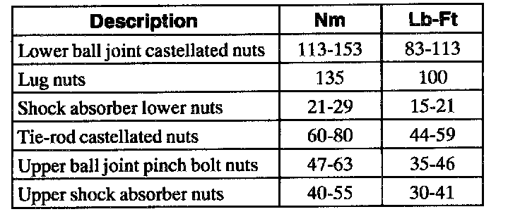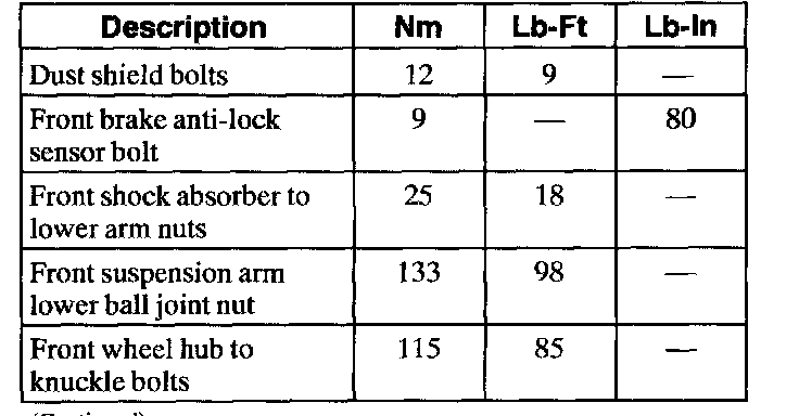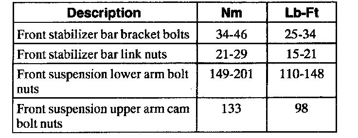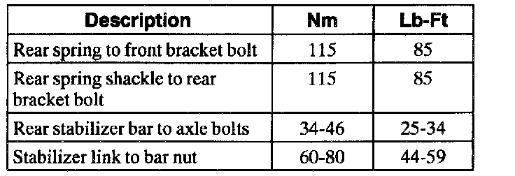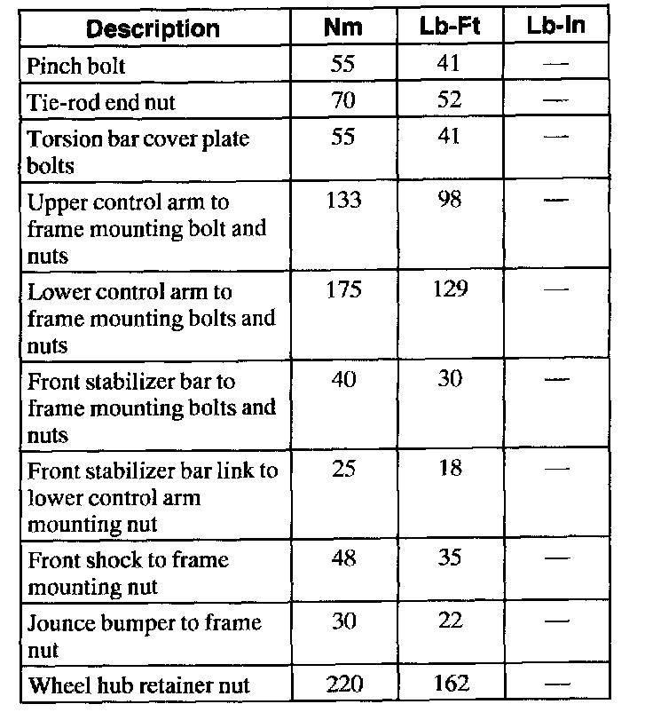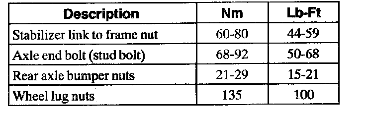 (4X2) Torque Specifications