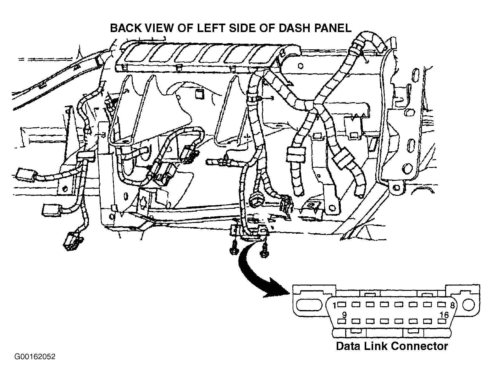 NOTE: Before performing any system tests, inspect Data Link Connector (DLC) for loose, damaged or corroded terminals. DLC is located under instrument panel between steering column and radio. See Figure. Pay particular attention to terminals No. 2 (Tan/Orange wire), No. 7 (Light Blue/White wire) and No. 10 (Pink/Light Blue wire). Always check control module power and ground circuits prior to replacing a control module. See COMPUTER DATA LINES, GROUND DISTRIBUTION or POWER DISTRIBUTION in appropriate SYSTEM WIRING DIAGRAMS article in ELECTRICAL.
