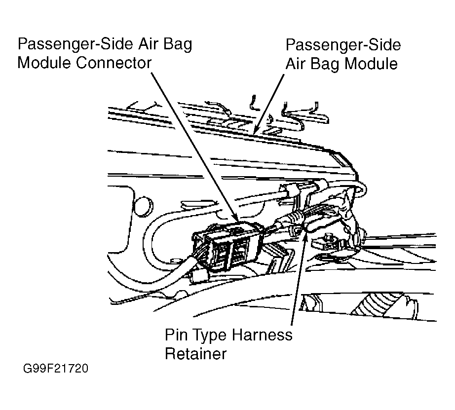 - Remove dual-stage passenger-side air bag. See DUAL-STAGE PASSENGER-SIDE AIR BAG MODULE