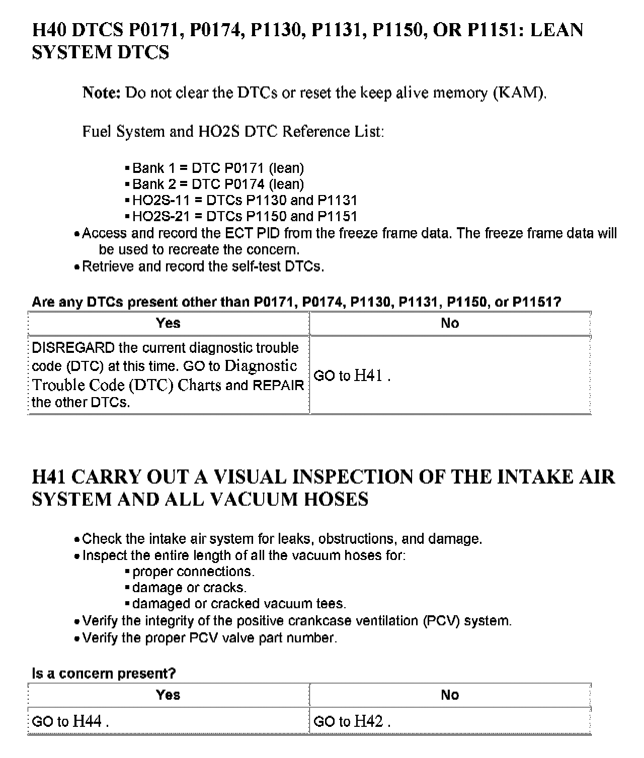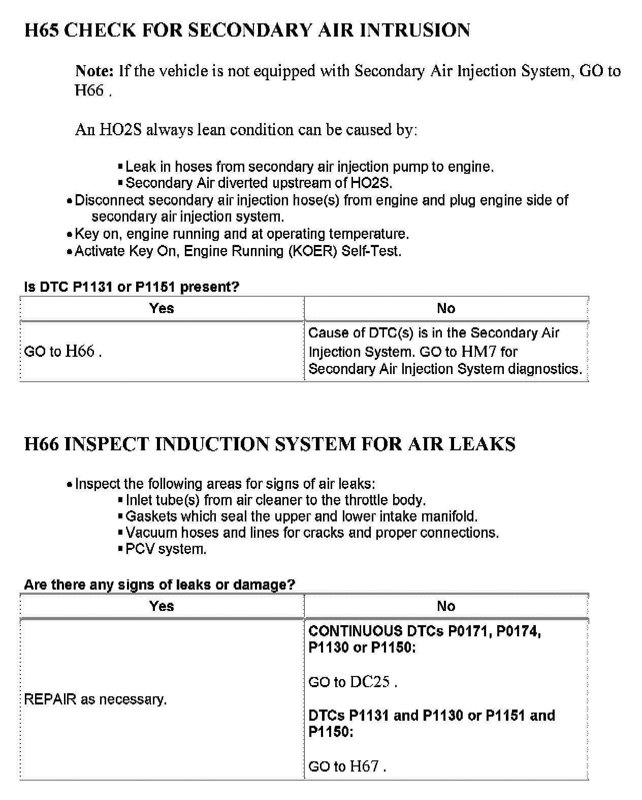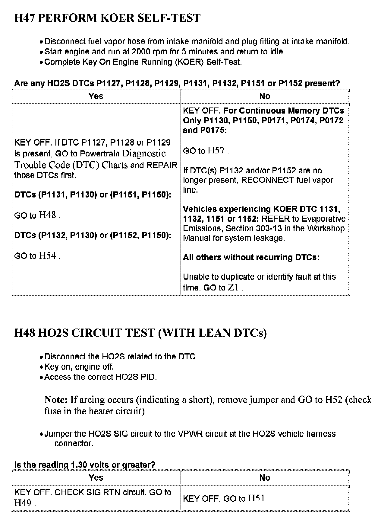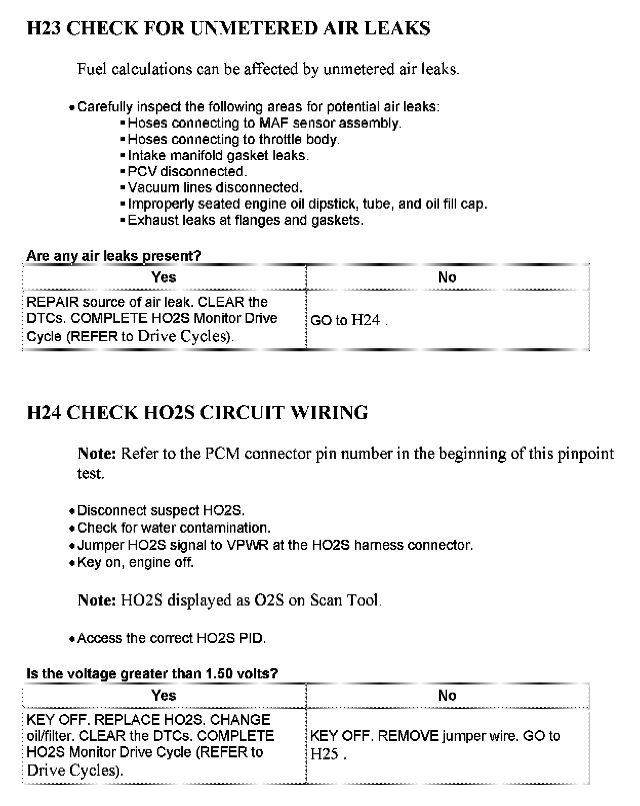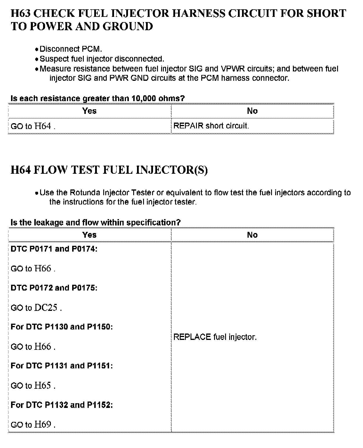 Home >> Ford >> 2001 >> Taurus V6-3.0L VIN U >> Repair and Diagnosis >> Powertrain Management >> Computers and Control Systems >> Testing and Inspection >> Pinpoint Tests >> Test H: Fuel Control