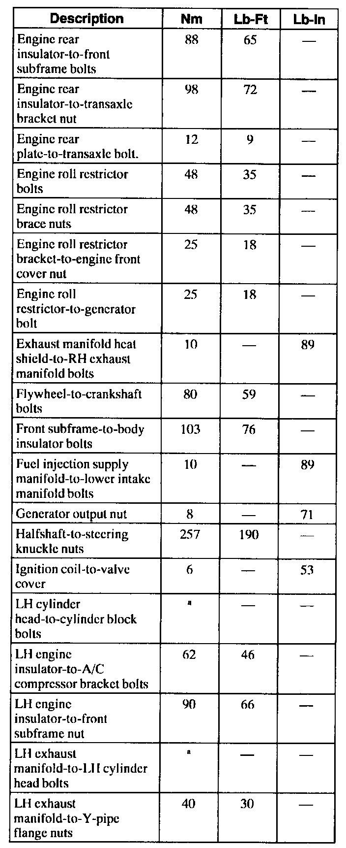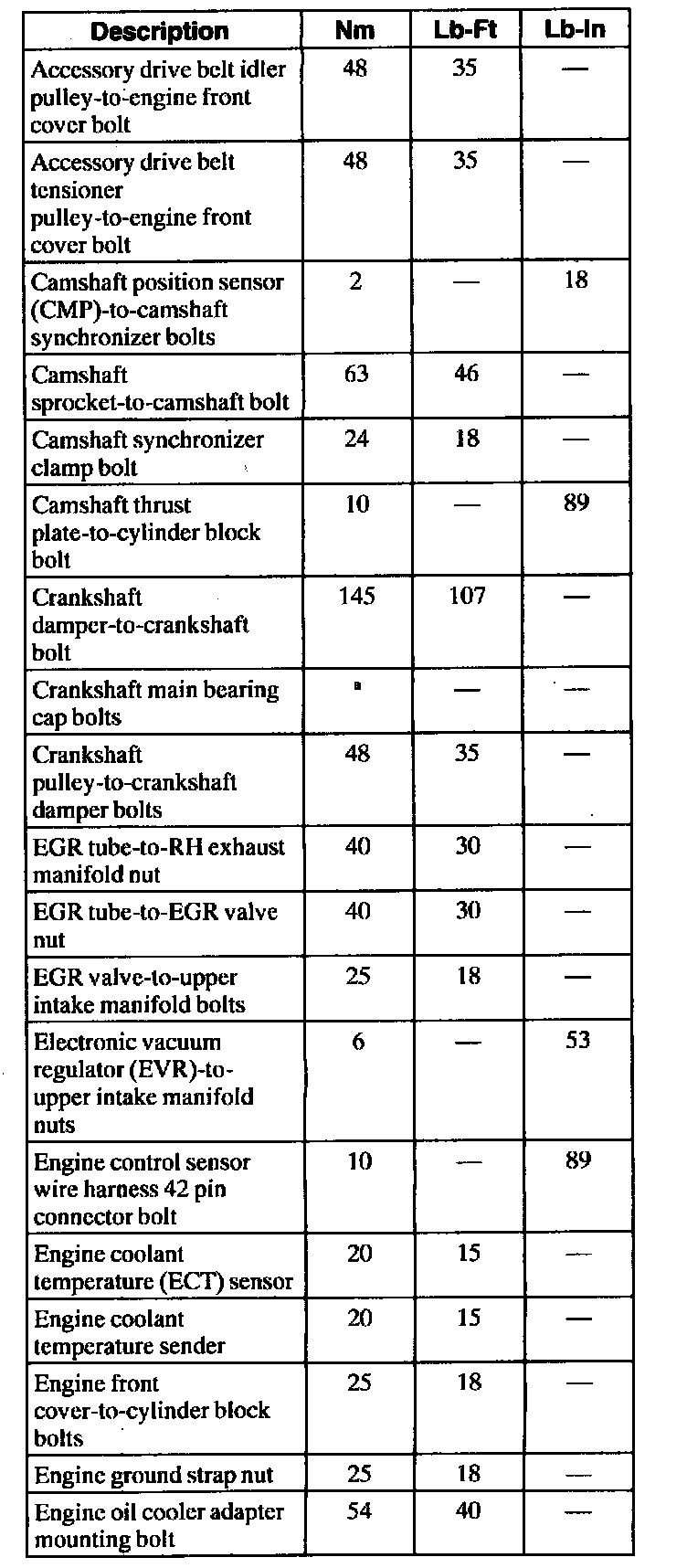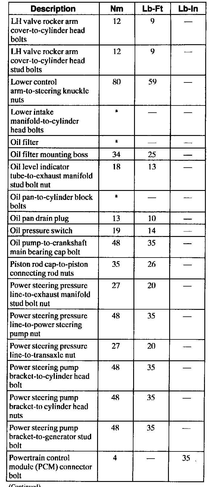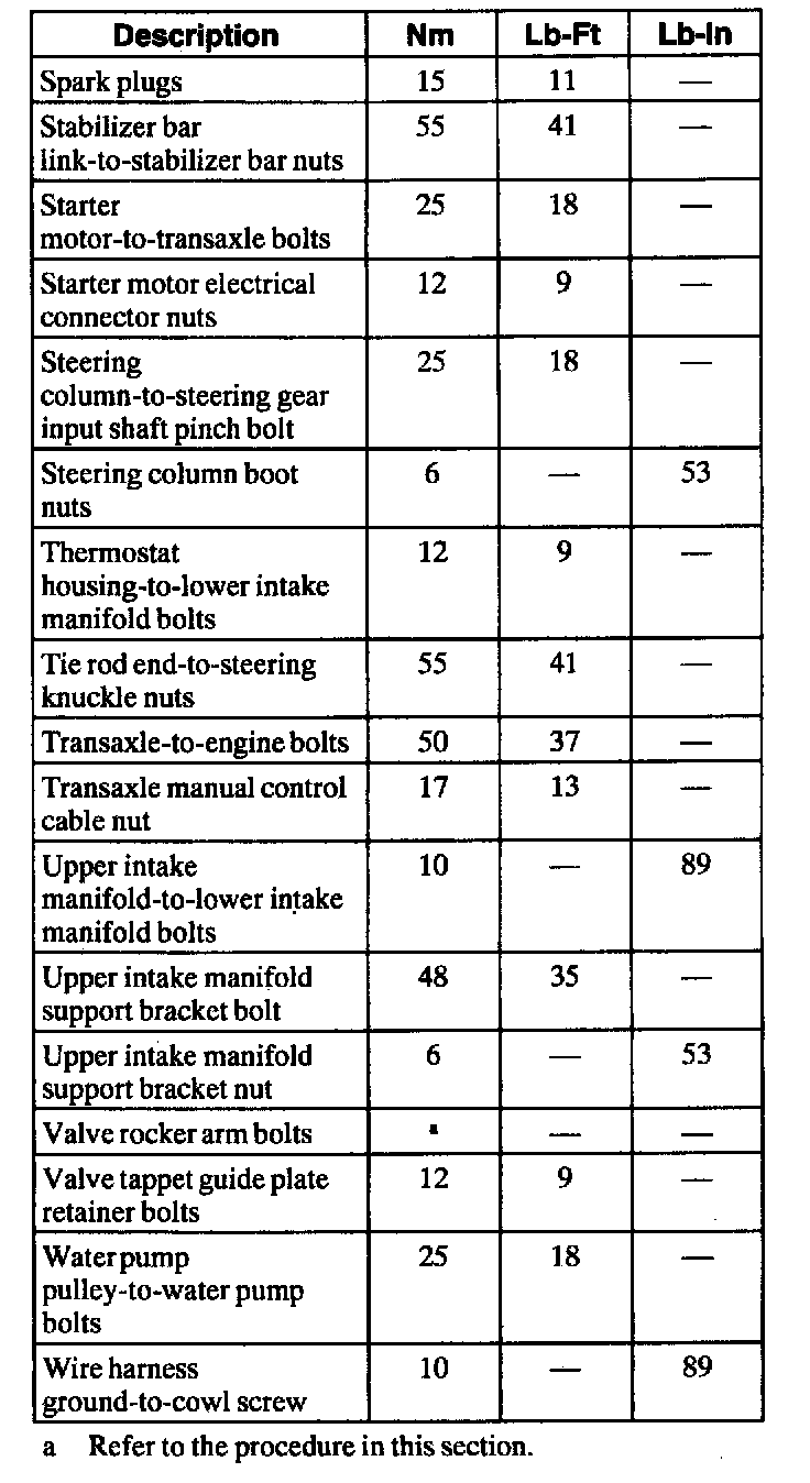 General Torque Specifications