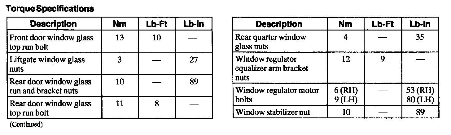Torque Specifications: