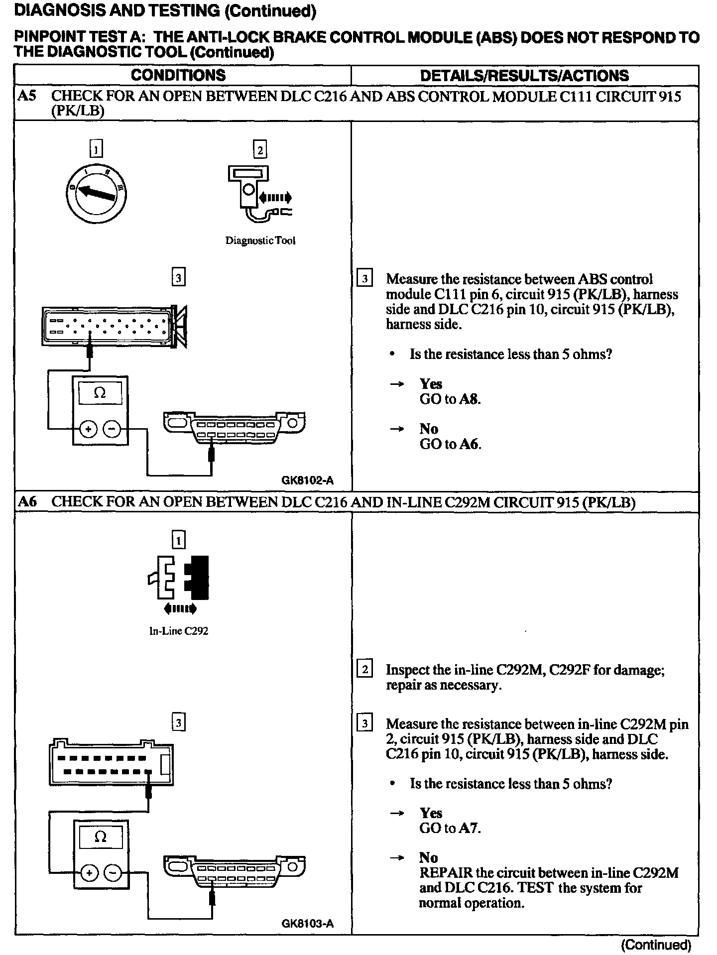 Test A: ABS Control Module Does Not Respond to the Scan Tool