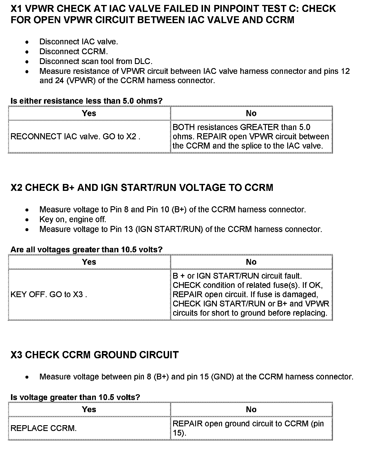Home >> Ford >> 2001 >> Windstar V6-3.8L VIN 4 >> Repair and Diagnosis >> Powertrain Management >> Computers and Control Systems >> Testing and Inspection >> Pinpoint Tests >> Test X: Constant Control Relay Module (CCRM)