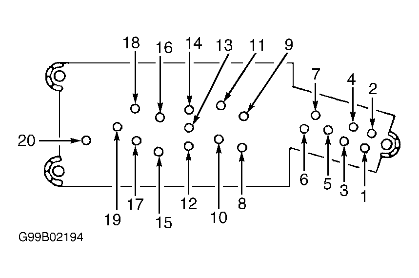 1. Remove master power window switch. See POWER WINDOW SWITCH  under REMOVAL & INSTALLATION. With all switches in NEUTRAL position and lock-out switch in OFF position, continuity should exist between terminals No. 19 and 20. See Fig 1. Continuity should also exist between terminal No. 13 and all other terminals except terminal No. 19. If continuity is as specified, go to next step. If continuity is not as specified, replace master power window switch.