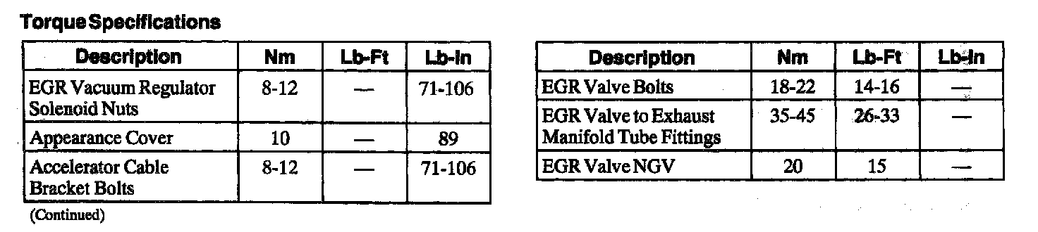 Torque Specifications: