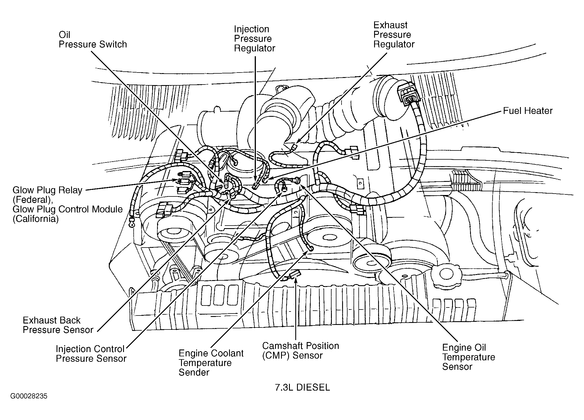 Glow Plug Control Module (California) (7.3L Diesel) Top right side of engine. See Figure.