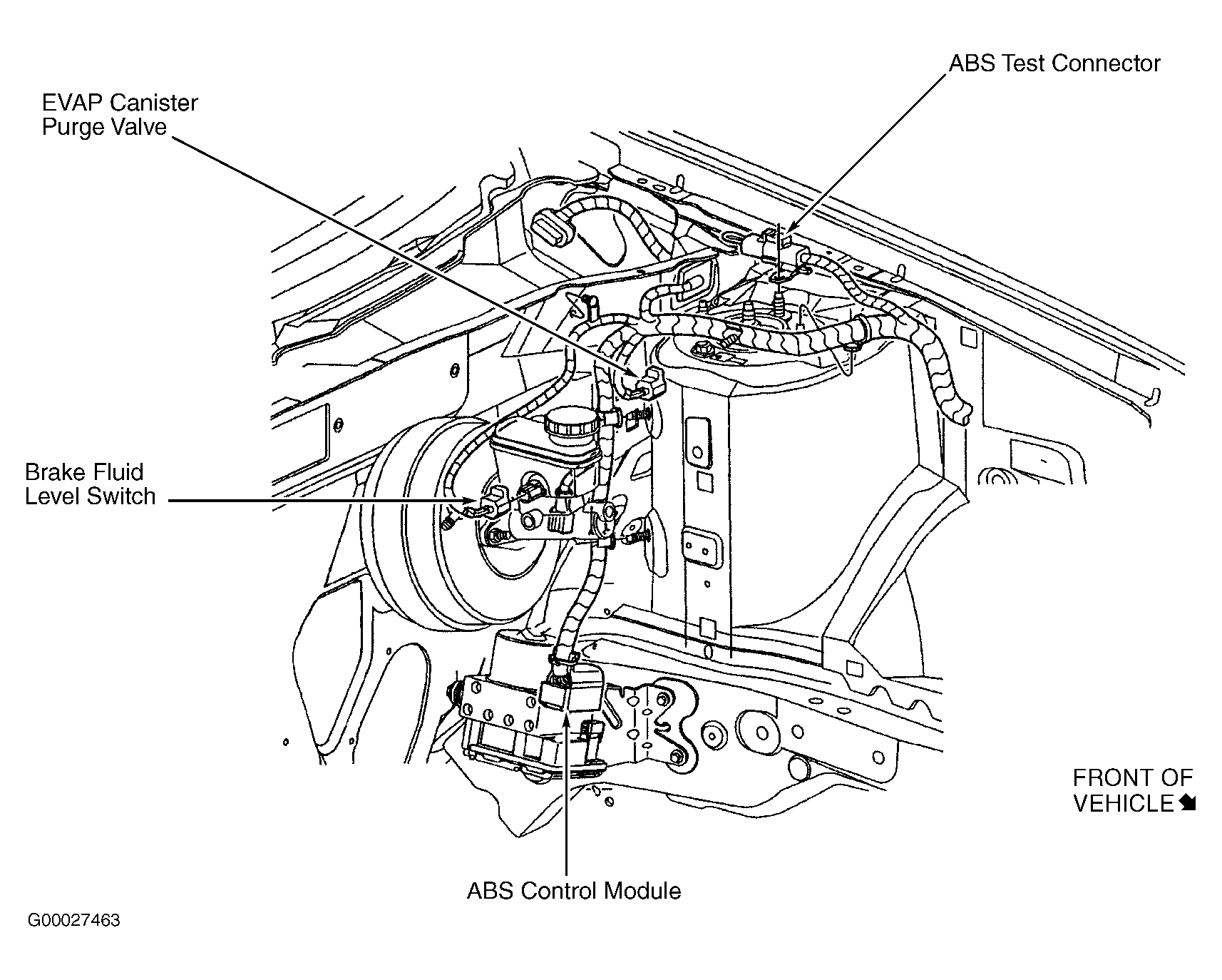 ABS Control Module On left rear side of engine compartment. See Figure .