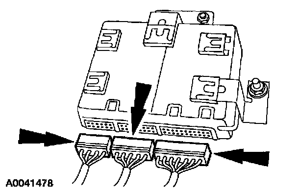 2. Locate the vehicle security module on the dash panel behind the radio and heater controls and disconnect the vehicle security module electrical connectors.