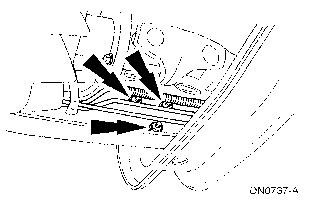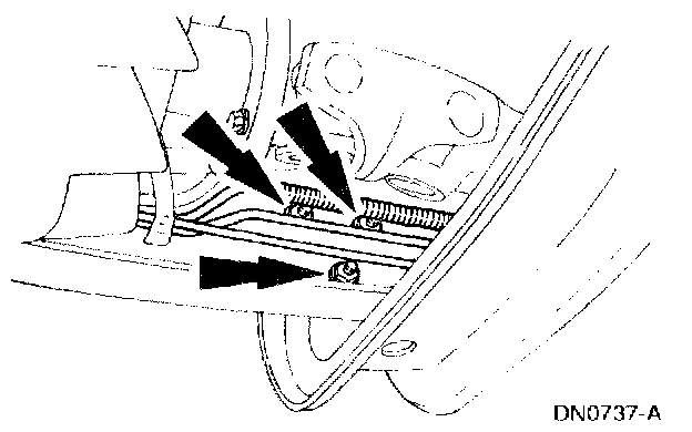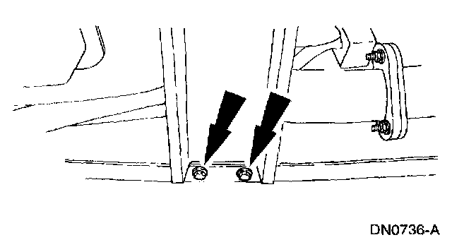 8. Remove the transmission support crossmember nuts and bolts (LH side).