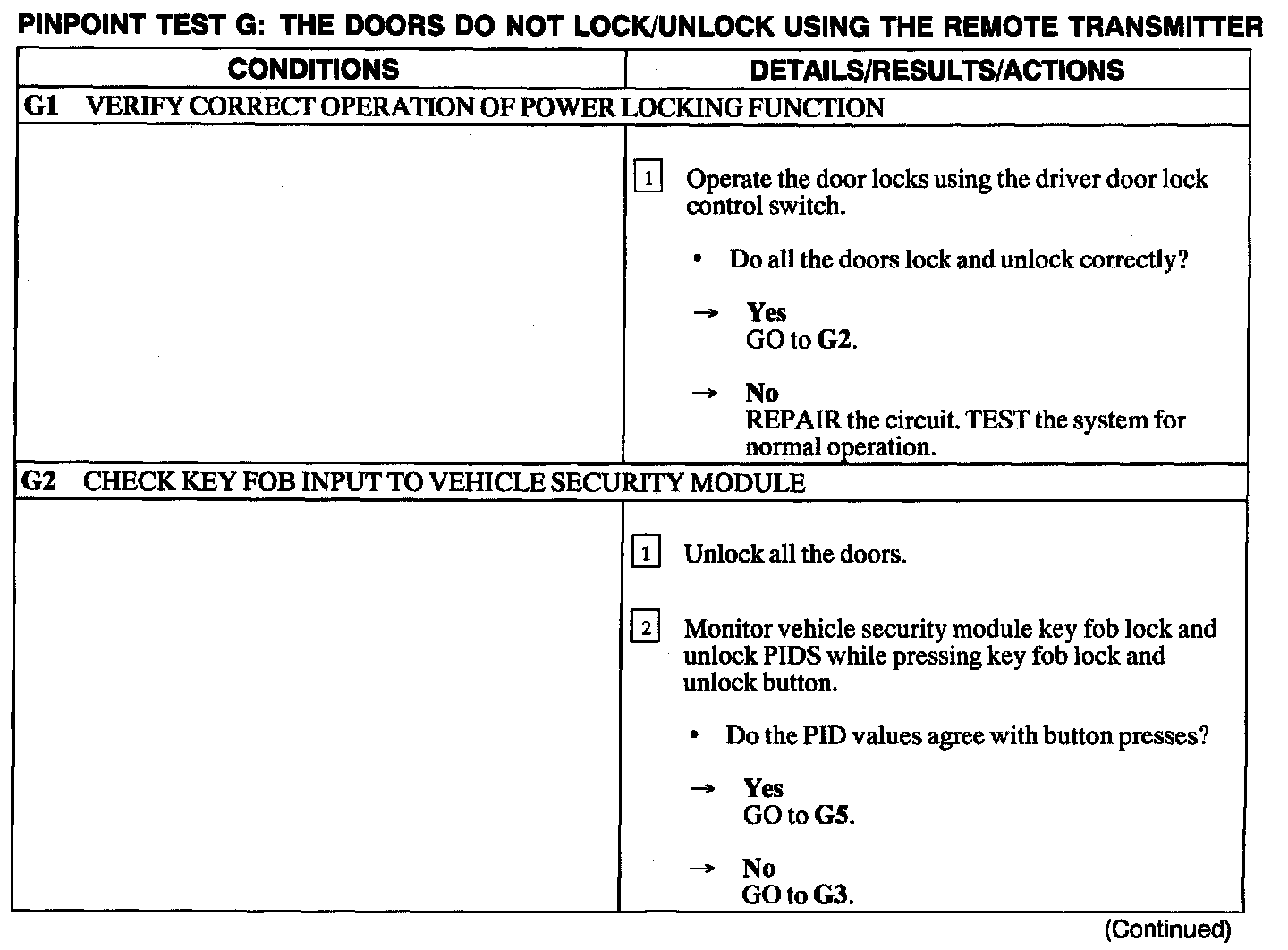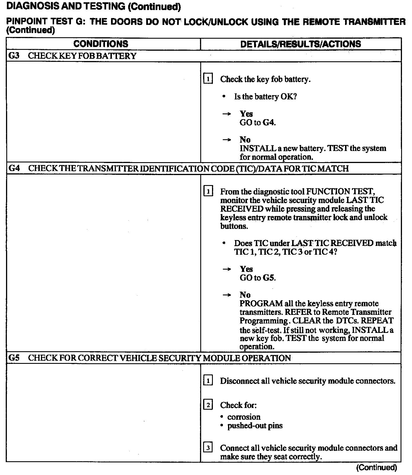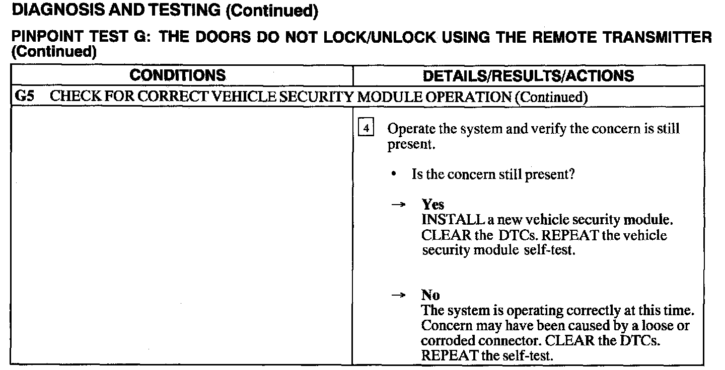 Test G: Doors Do Not Lock/Unlock Using the Remote Transmitter