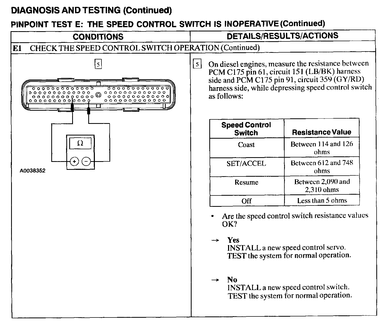 Test E: Speed Control Switch Is Inoperative