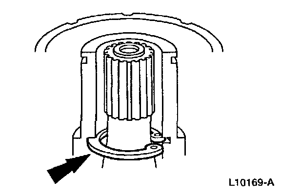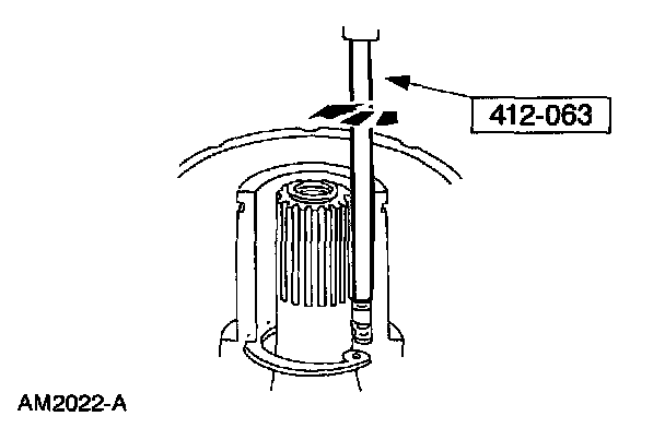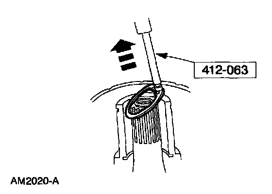6. Pull the special tool up quickly while keeping the tool shaft against the side of the nose opening and remove the snap ring.