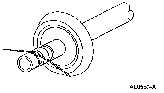6. Remove the A/C tube lock coupling spring with a small hooked wire.