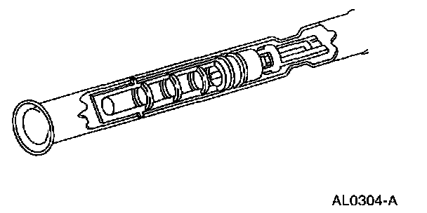 ^ The downstream side also contains a fitting used to mount the A/C pressure cutoff switch. A long-travel Schrader-type valve stem core is installed in the fitting so that the A/C pressure cutoff switch can be removed without discharging the A/C system.