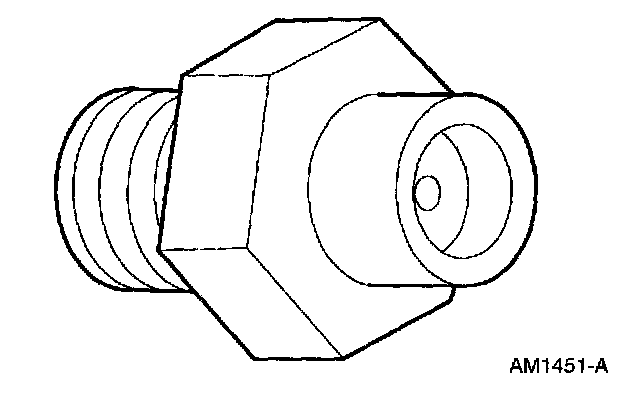 ^ A valve depressor, located inside the threaded end of the A/C pressure cutoff switch, presses on the Schrader valve stem.