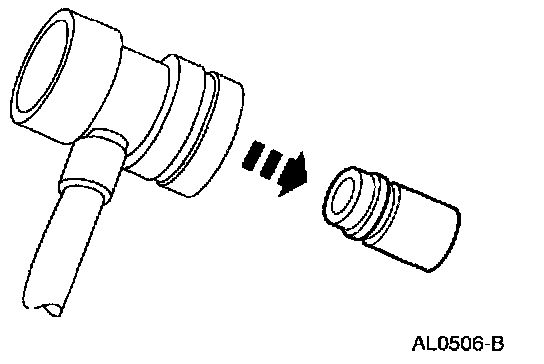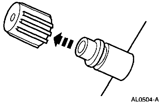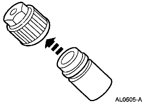 2. Remove the A/C charging valve cap from the low-pressure service gauge port valve.
