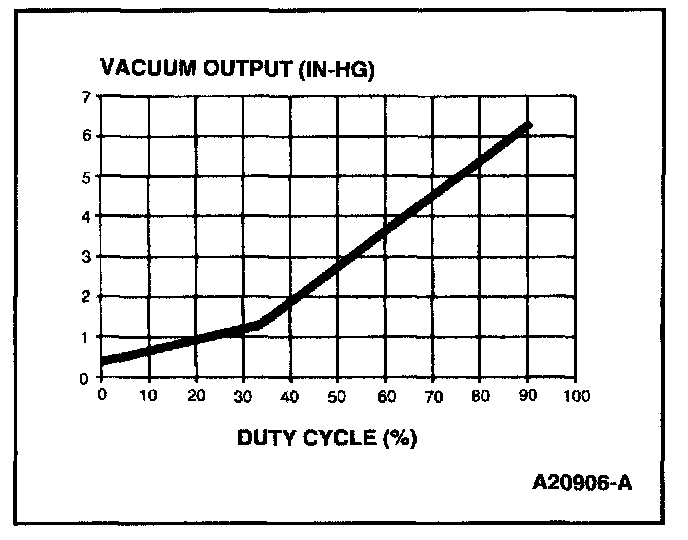 The EGR vacuum regulator solenoid (Figure 88) is an electromagnetic device which is used to regulate the vacuum supply to the EGR valve. The solenoid contains a coil which magnetically controls the position of a disc to regulate the vacuum. As the duty cycle to the coil increases, the vacuum signal passed through the solenoid to the EGR valve also increases. Vacuum not directed to the EGR valve is vented through the solenoid vent to atmosphere. Note that at 0% duty cycle (no electrical signal applied), the EGR vacuum regulator solenoid allows some vacuum to pass, but not enough to open the EGR valve.