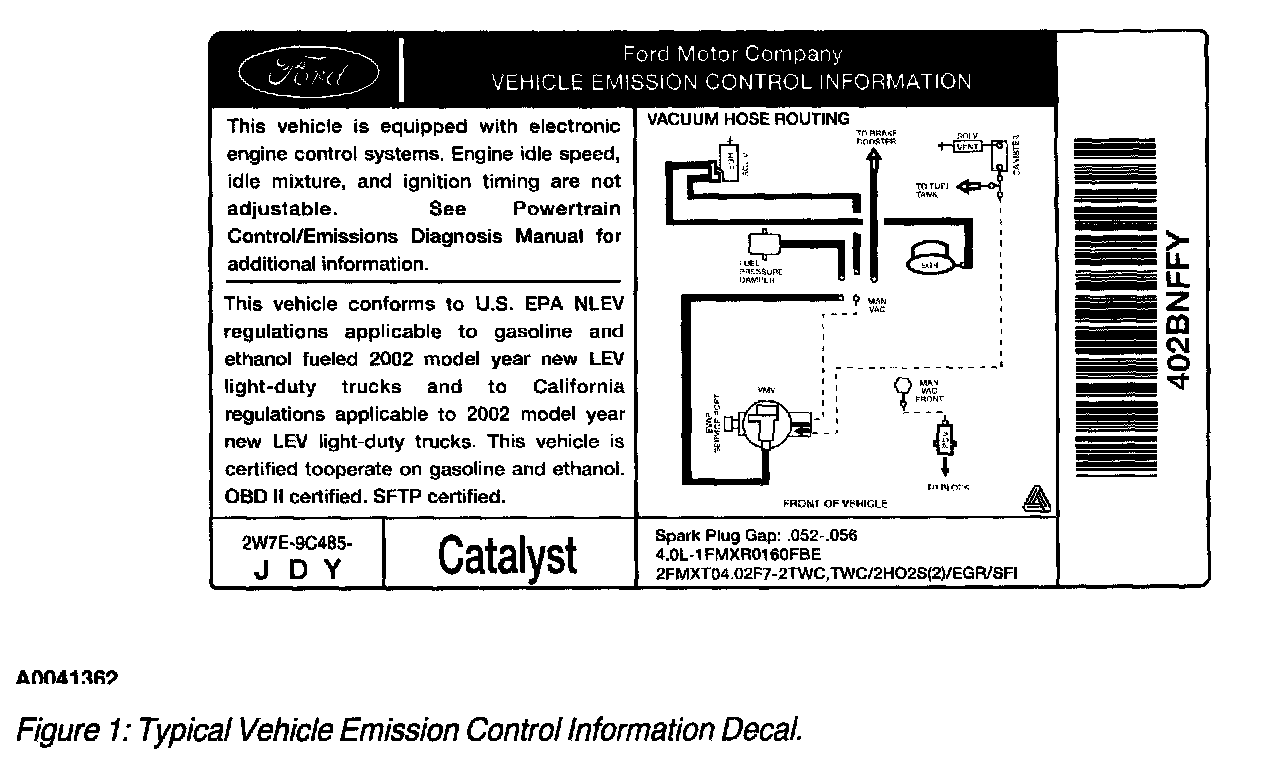 Each vehicle has a decal (Figure 1) containing emission control information that applies specifically to the vehicle and engine. The specifications on the decal are critical to servicing emissions systems.