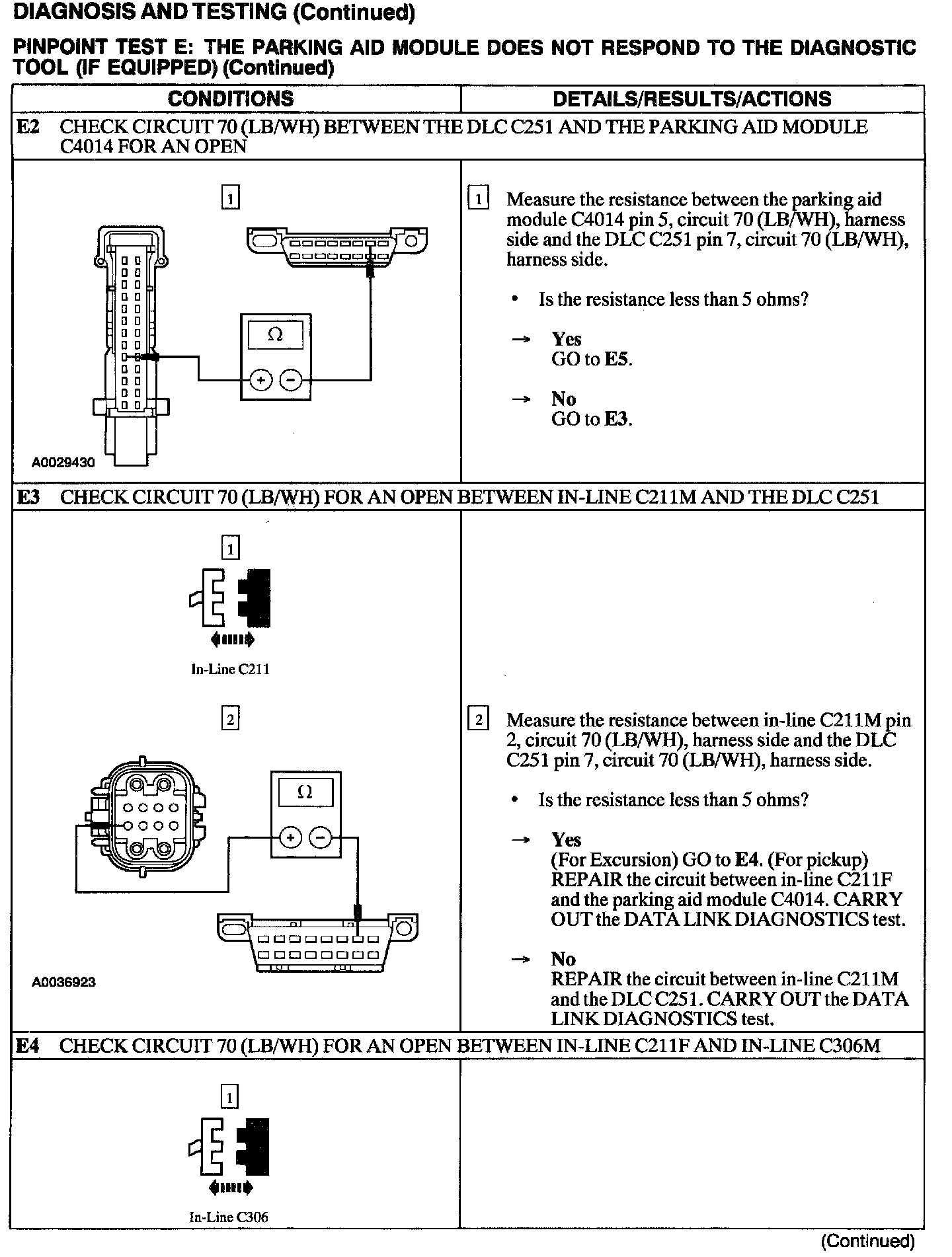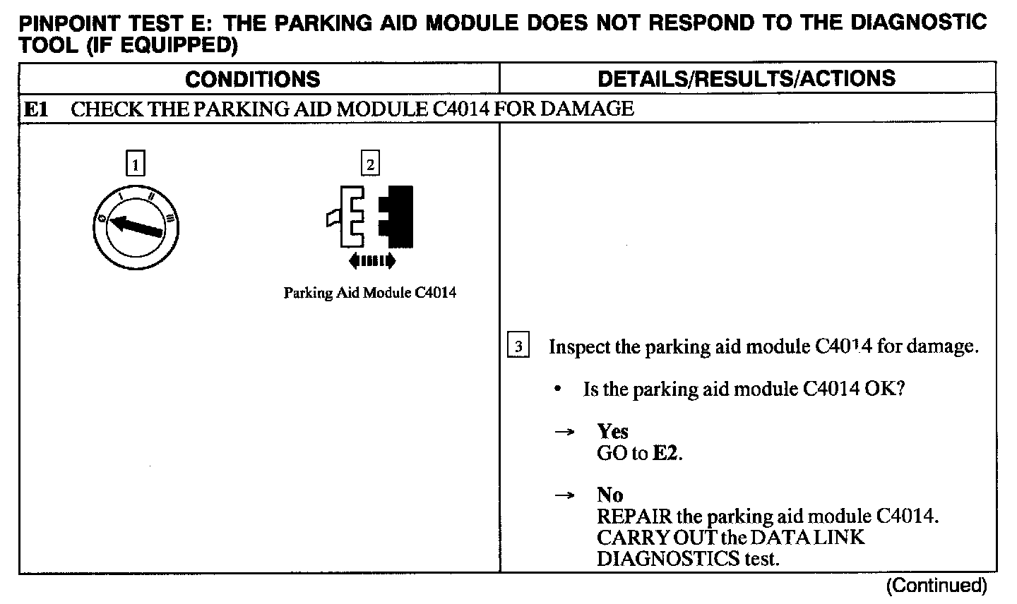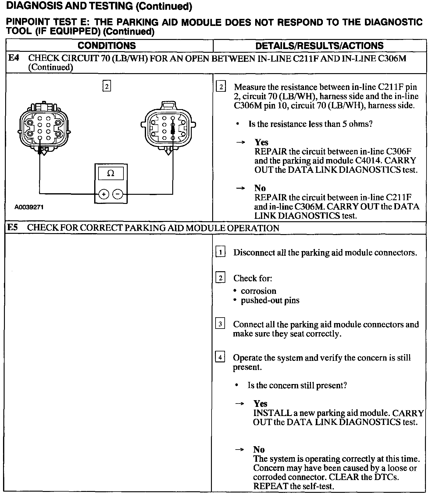 Test E: Parking Aid Module (PAM) Does Not Respond to the Scan Tool