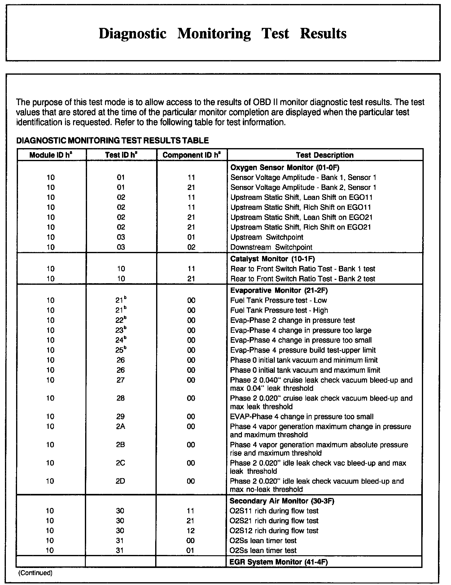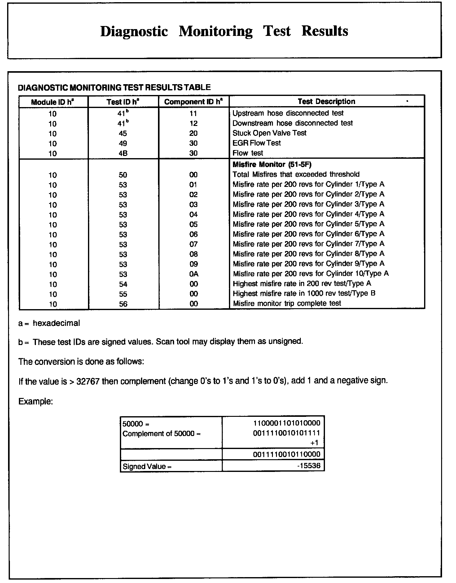 Diagnostic Monitoring Test Results