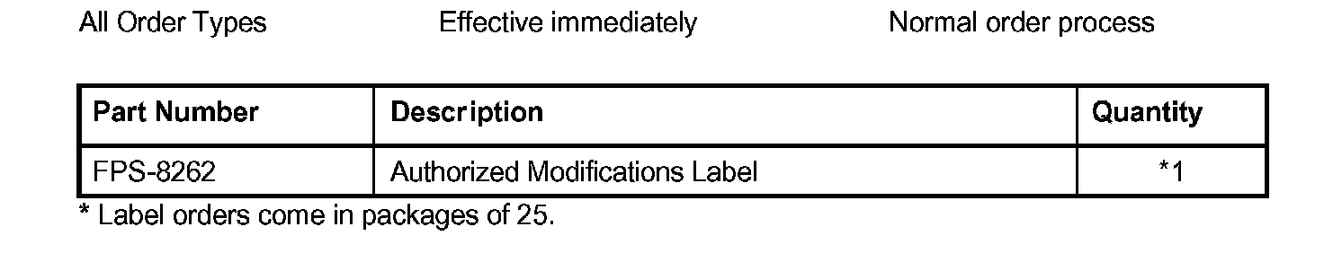 PARTS REQUIREMENTS / ORDERING INFORMATION