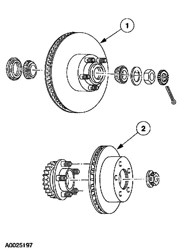 1 On vehicles with inner and outer bearings, inspect the bearings and cups for wear or damage. Adjust or install new bearings and cups as necessary.