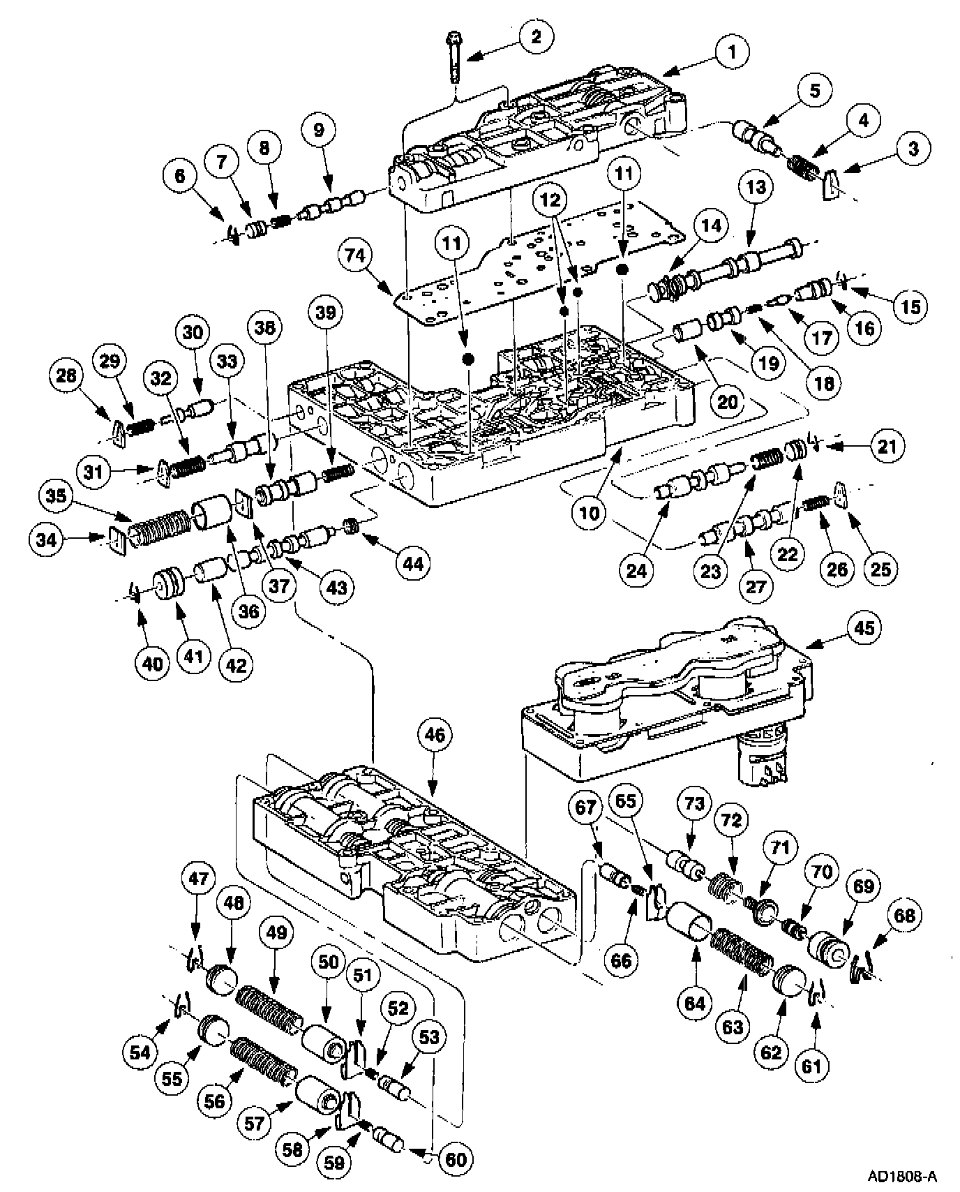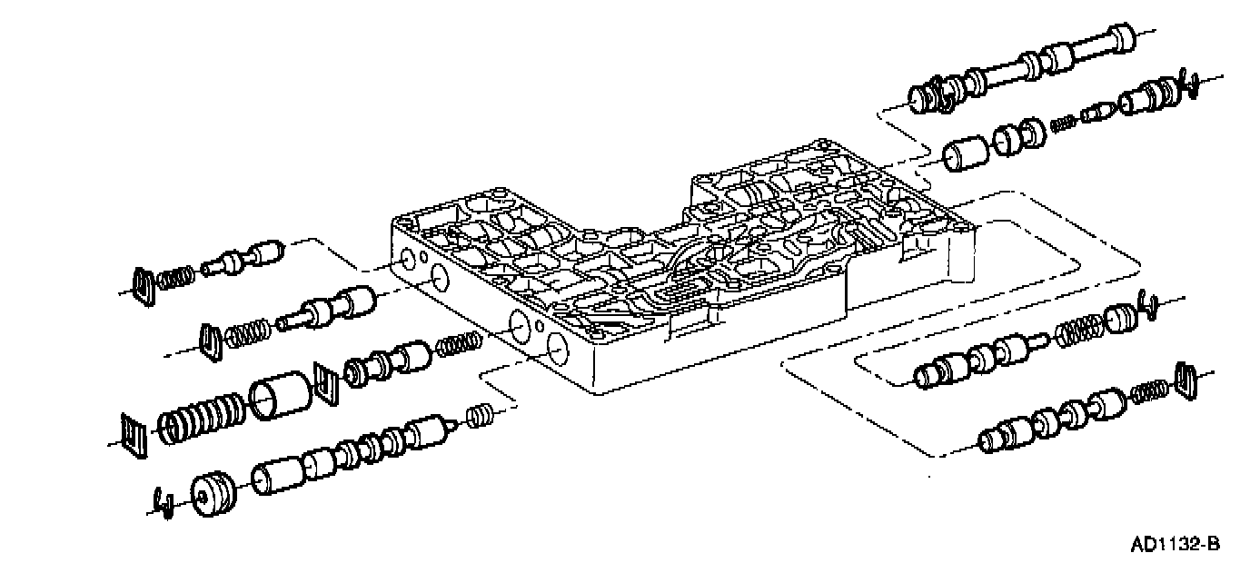 Upper, Lower, Accumulator and Solenoid Bodies, Disassembled View