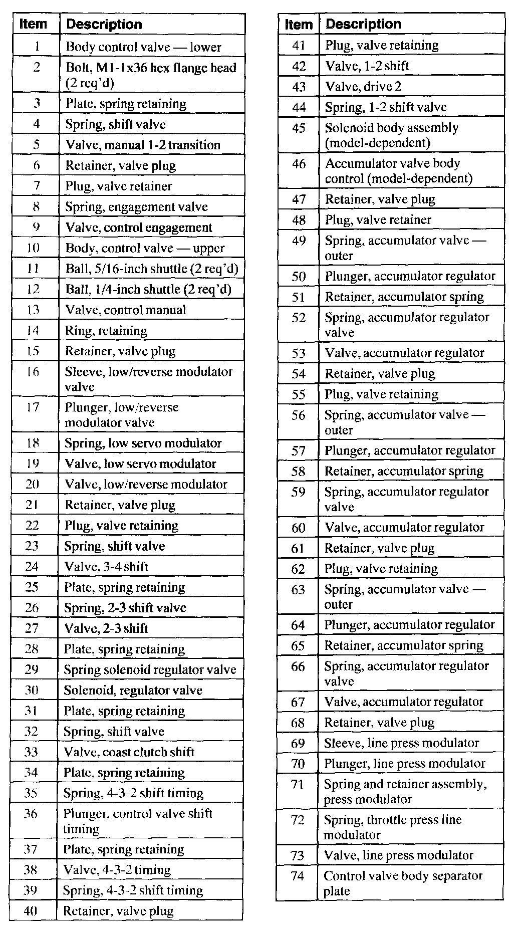 Home >> Ford >> 2002 >> Excursion 2WD V10-6.8L >> Repair and Diagnosis >> Transmission and Drivetrain >> Automatic Transmission/Transaxle >> Service and Repair >> Overhaul >> Disassembly and Assembly of Subassemblies >> Main Control Valve Body-Disassembly and Assembly