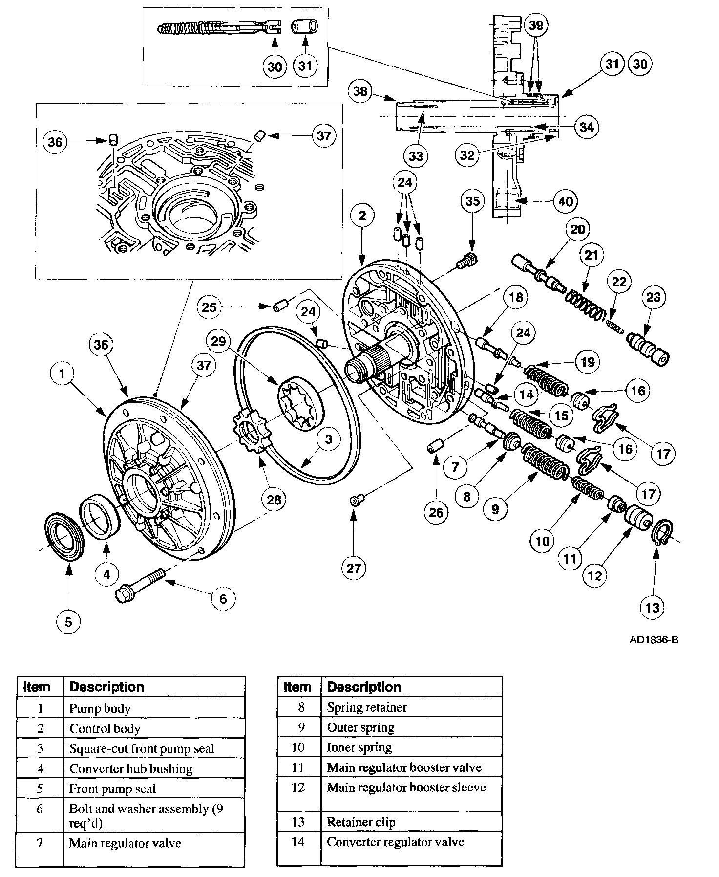 1. NOTE: Inspect and replace the front pump seal, if damaged.