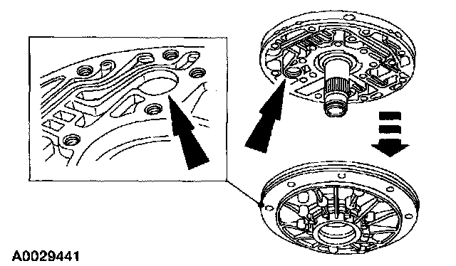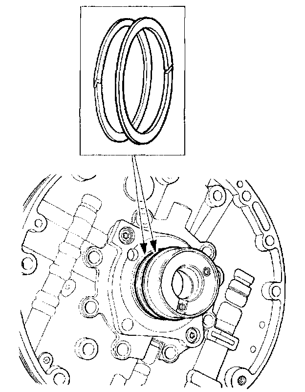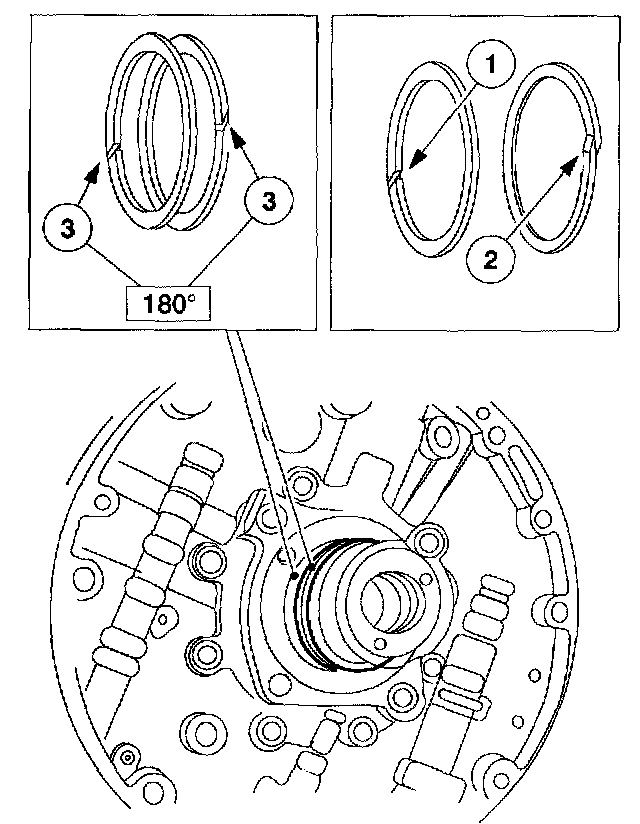 Install the 2 coast clutch Teflon seals. Make sure the seals are fully seated in the stator support seal grooves and the seal ends are oriented 180 degrees apart.