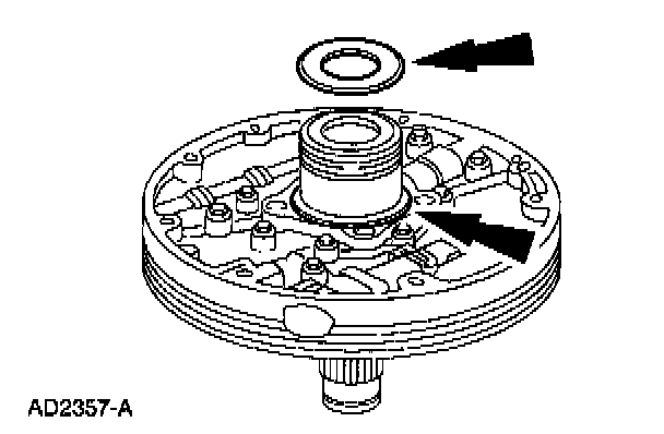 Install the No. 1 pump thrust washer and the No. 2A overdrive sun gear thrust bearing.