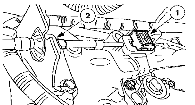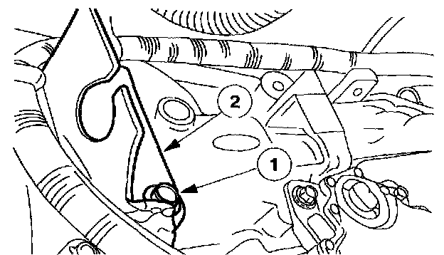 2 Depress the lock tabs to release the transmission shift cable and disconnect the transmission shift cable from the transmission shift cable bracket.