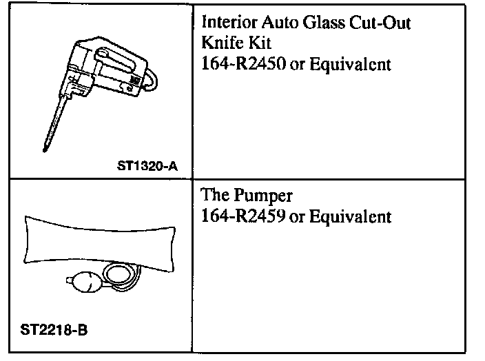WARNING: TO PREVENT GLASS SPLINTERS FROM ENTERING THE EYES OR CUTTING THE HANDS, WEAR SAFETY GLASSES AND HEAVY GLOVES WHEN CUTTING THE GLASS FROM THE VEHICLE.