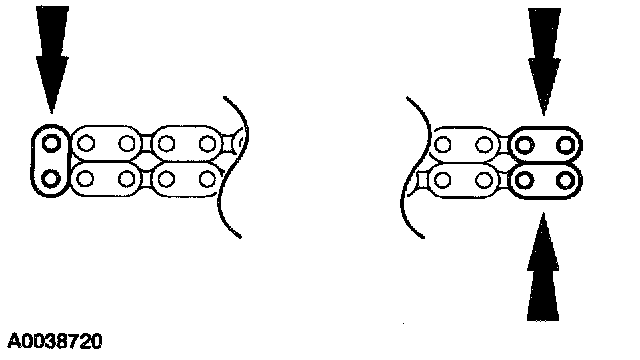If the copper links are not visible, mark two links on one end and one link on the other end, and use as timing marks.