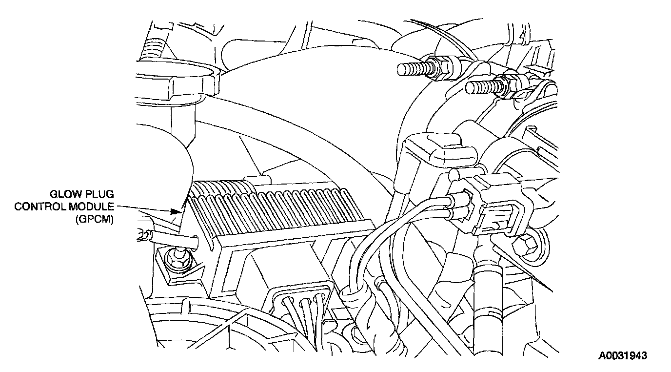 The California glow plug system is composed of solid state Glow Plug Control Module (GPCM), glow plugs and the associated wiring harness. The glow plug on-time is controlled by the Powertrain Control Module (PCM) and is a function of oil temperature, barometric pressure and battery voltage. The PCM enables the GPCM which drives the individual glow plugs. Glow plug on-time normally varies between 1 to 120 seconds. In addition to PCM control, the GPCM internally limits the glow plug operation to 180 seconds regardless of PCM commanded on-time. The power to the glow plugs is provided through the GPCM solid state drivers directly from the vehicle battery. The GPCM monitors and detects individual glow plug functionality, and the control and communication links to the PCM. The failures detected by the GPCM are passed to the PCM using a serial communication signal on the diagnostic line.