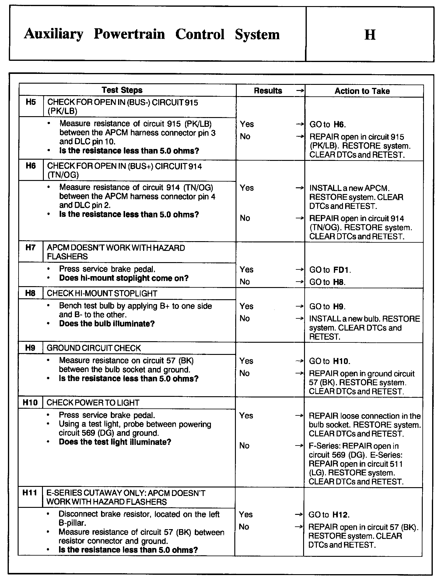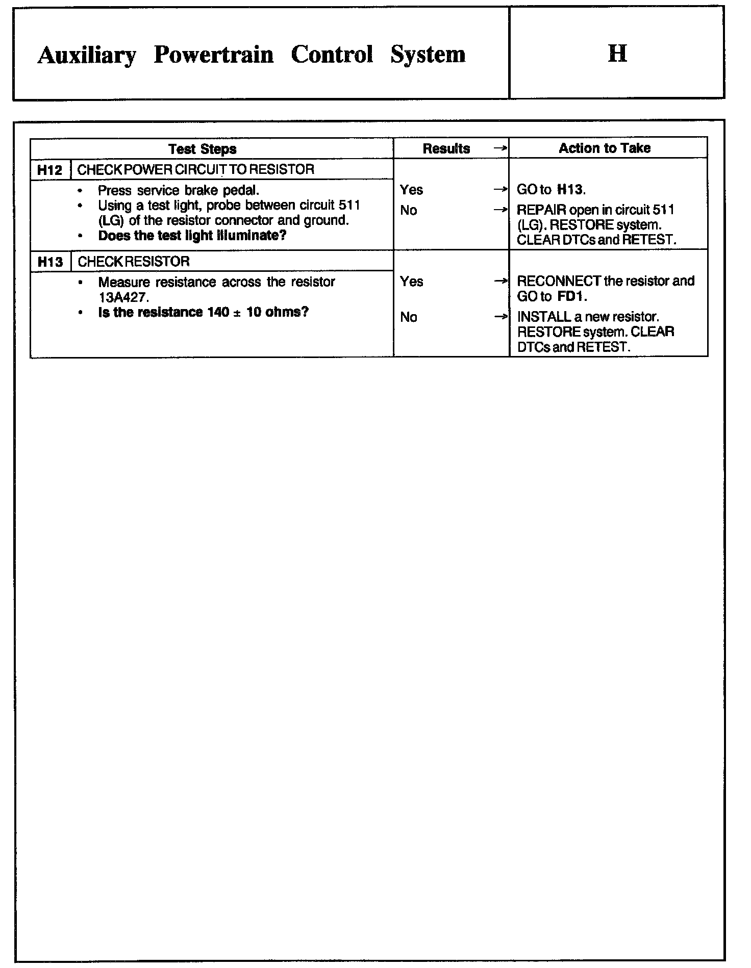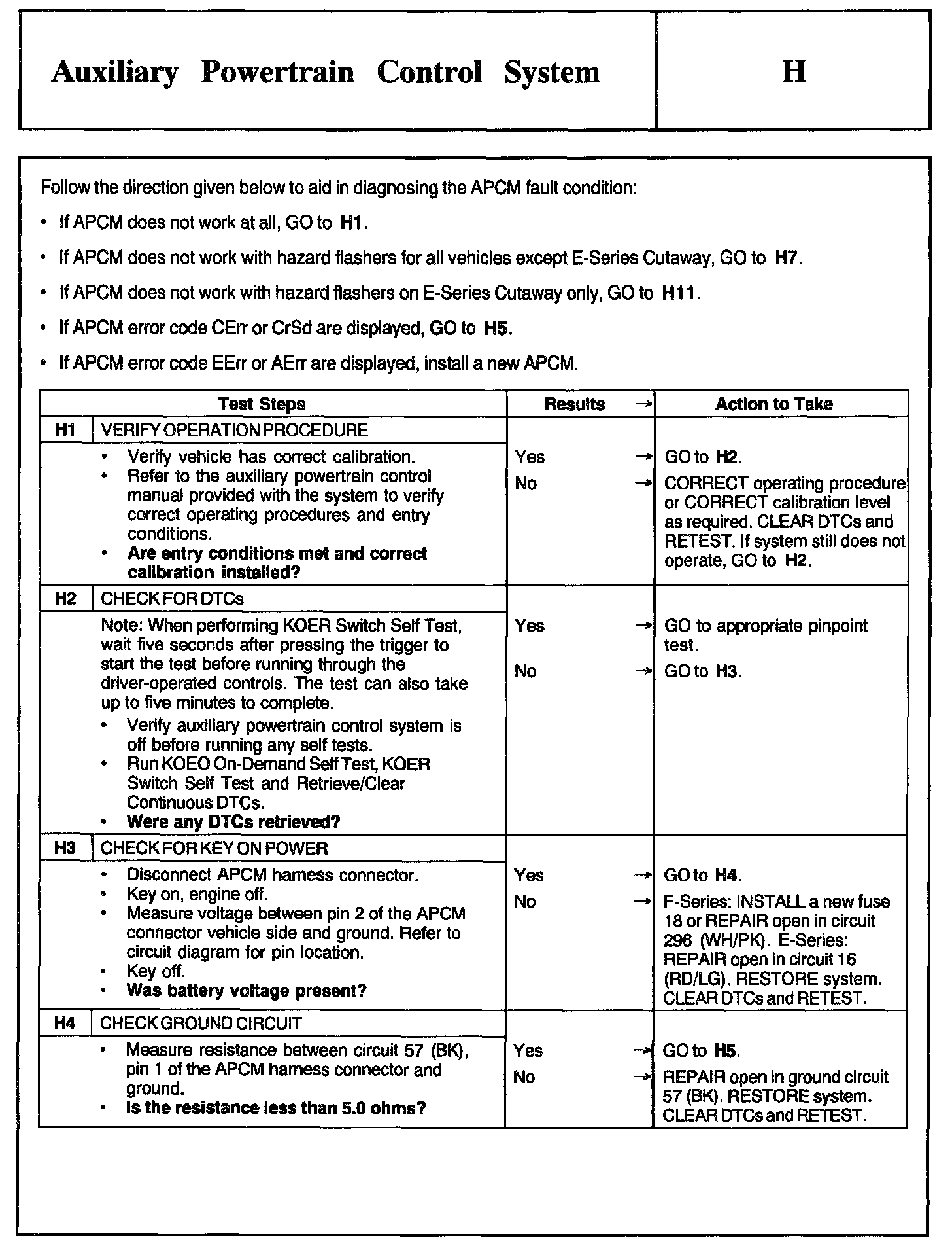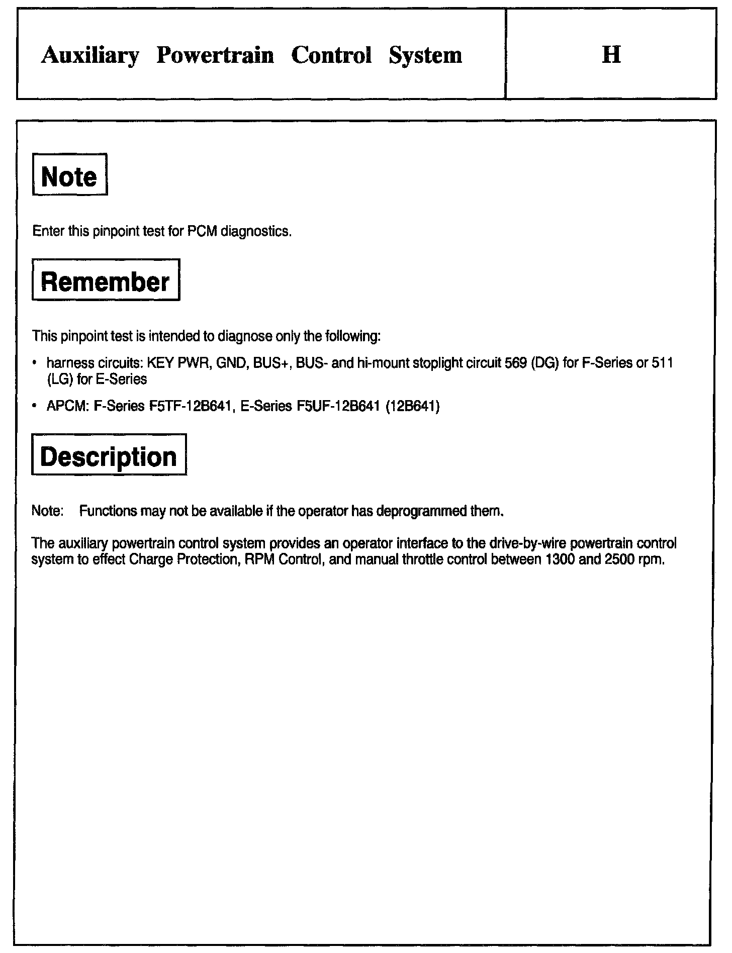 Test H: Auxiliary Powertrain Control System