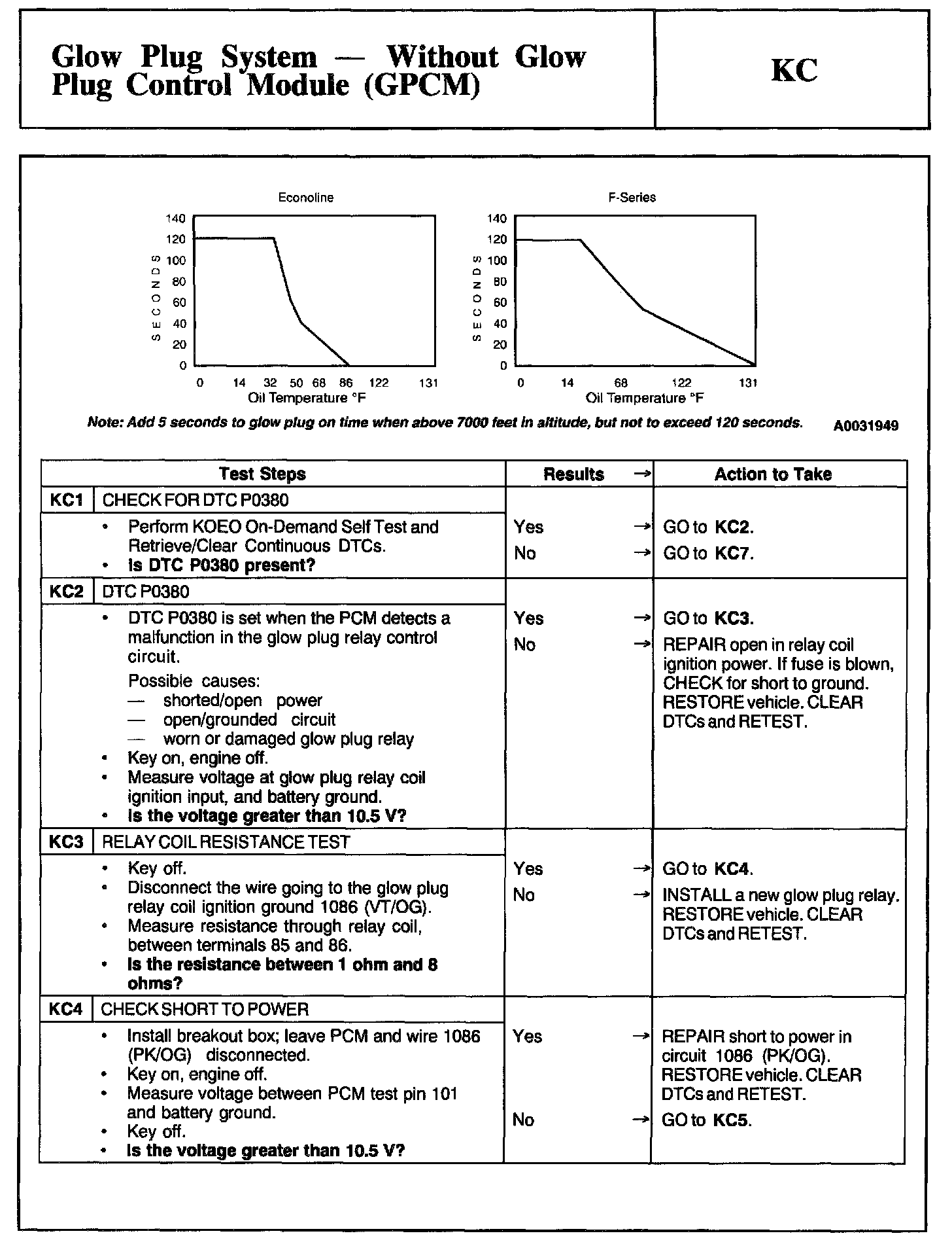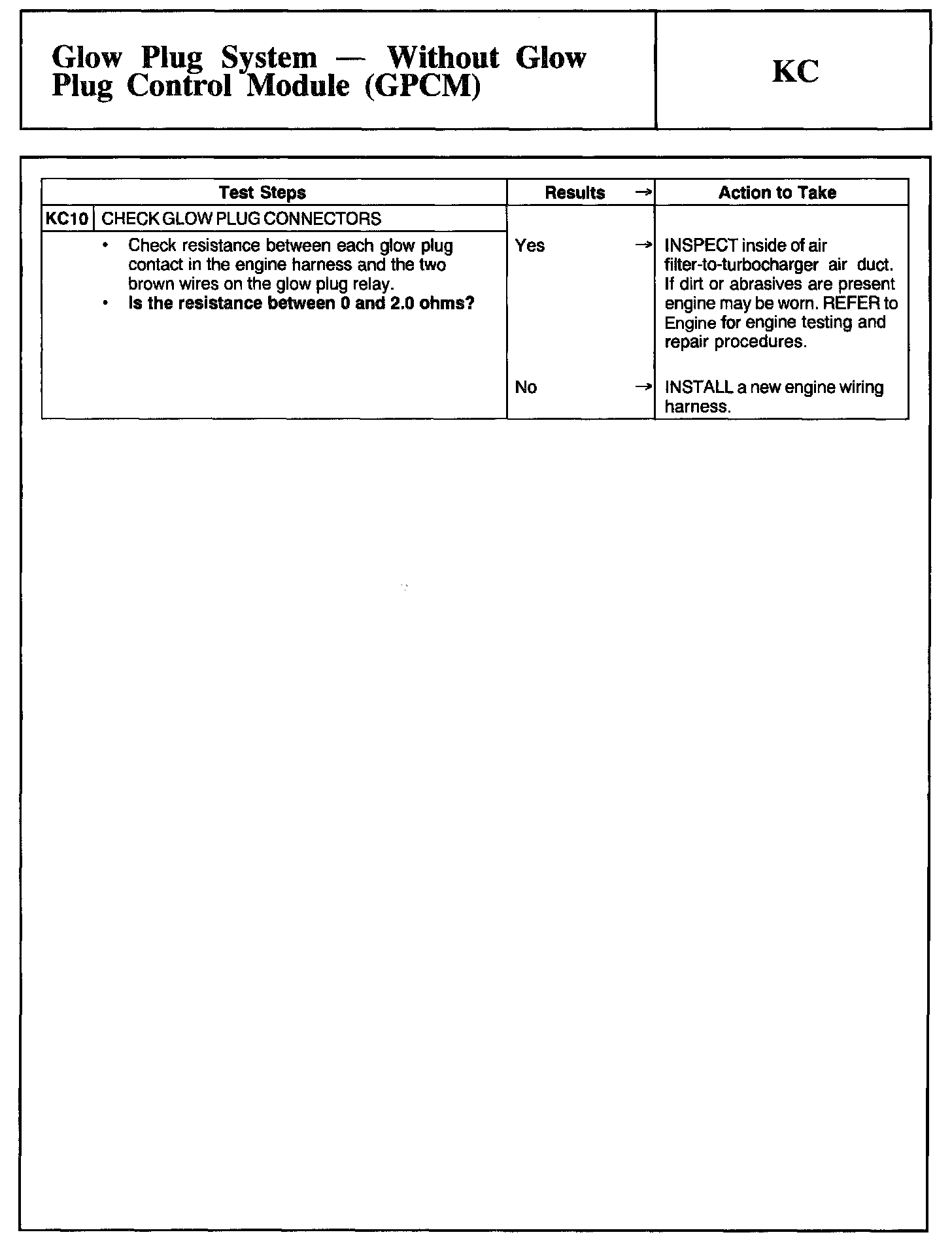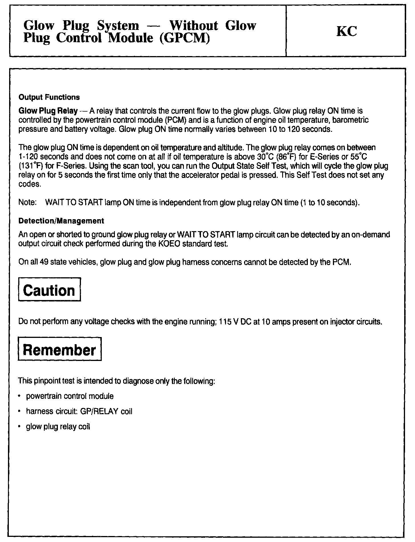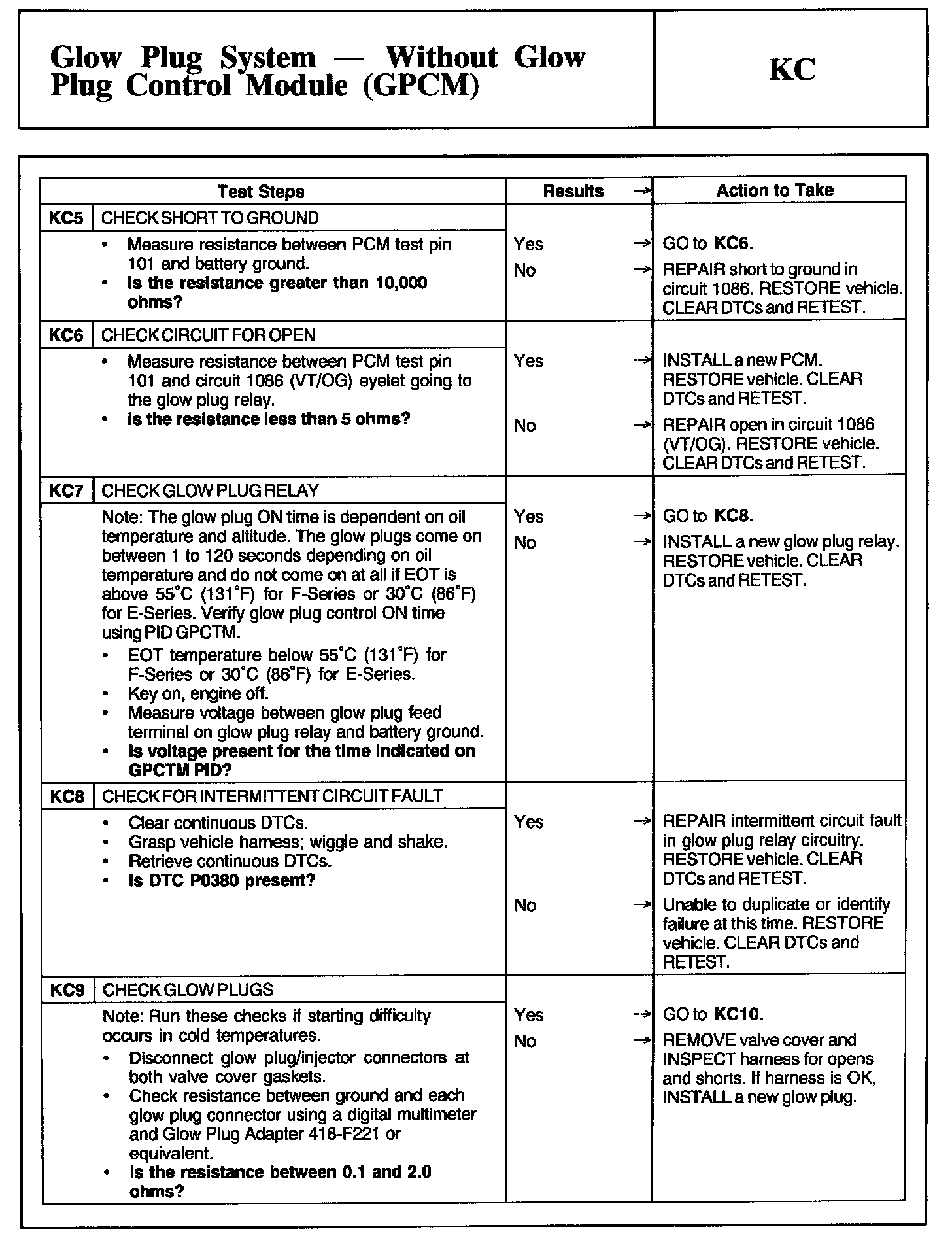 Tests KC: Glow Plug System - Without Glow Plug Control Module (GPCM)