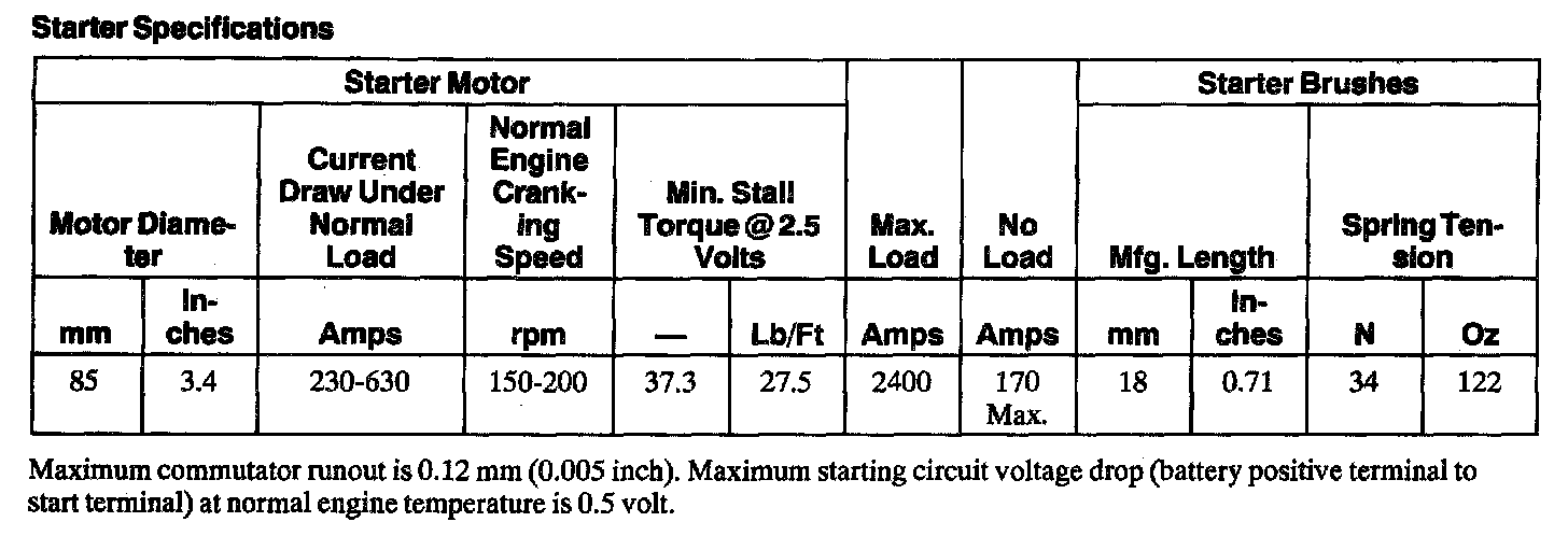 Starter Specifications: