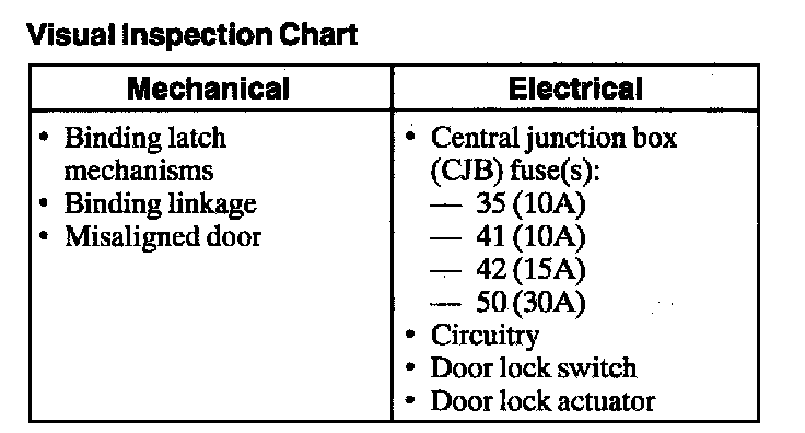 1. Verify the customer concern by operating the system.Visual Inspection Chart: