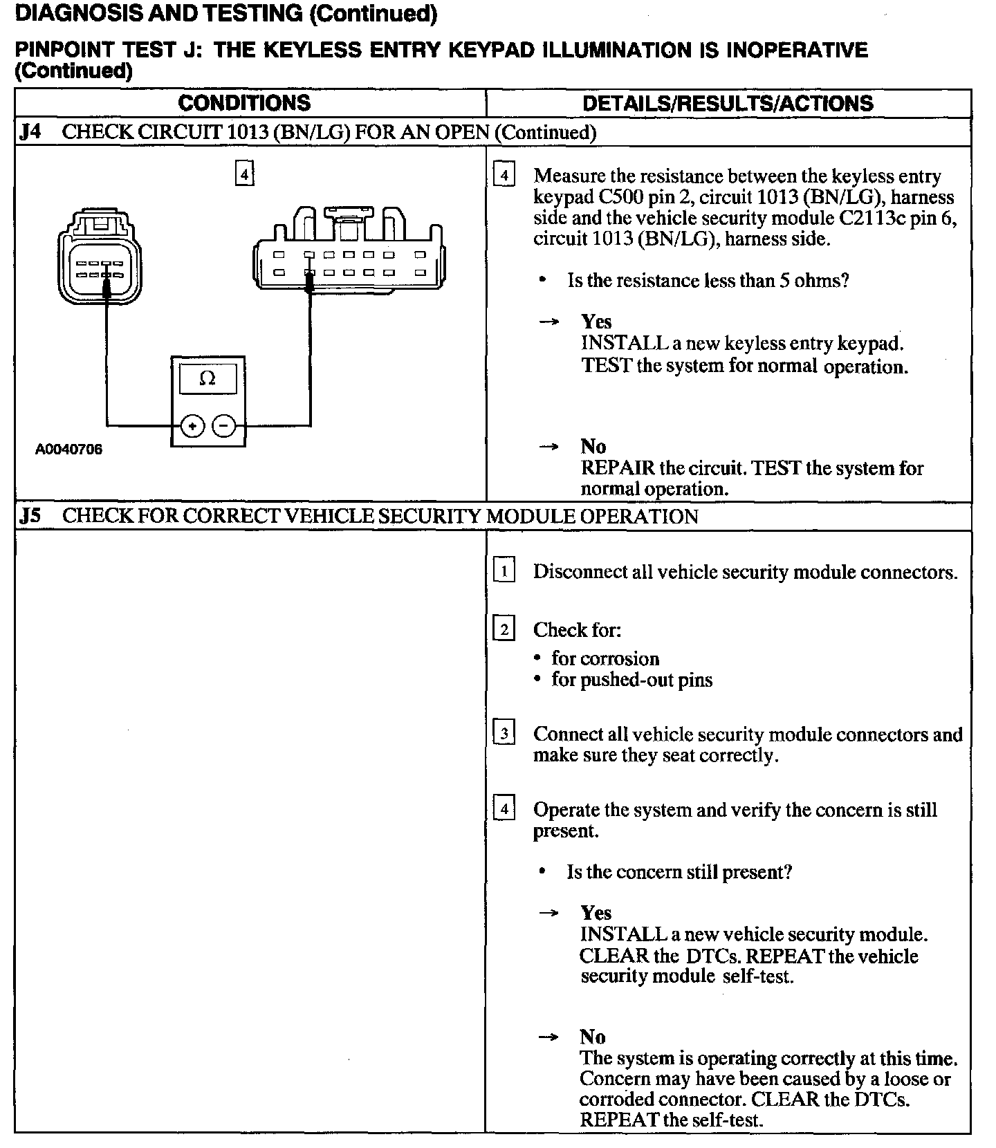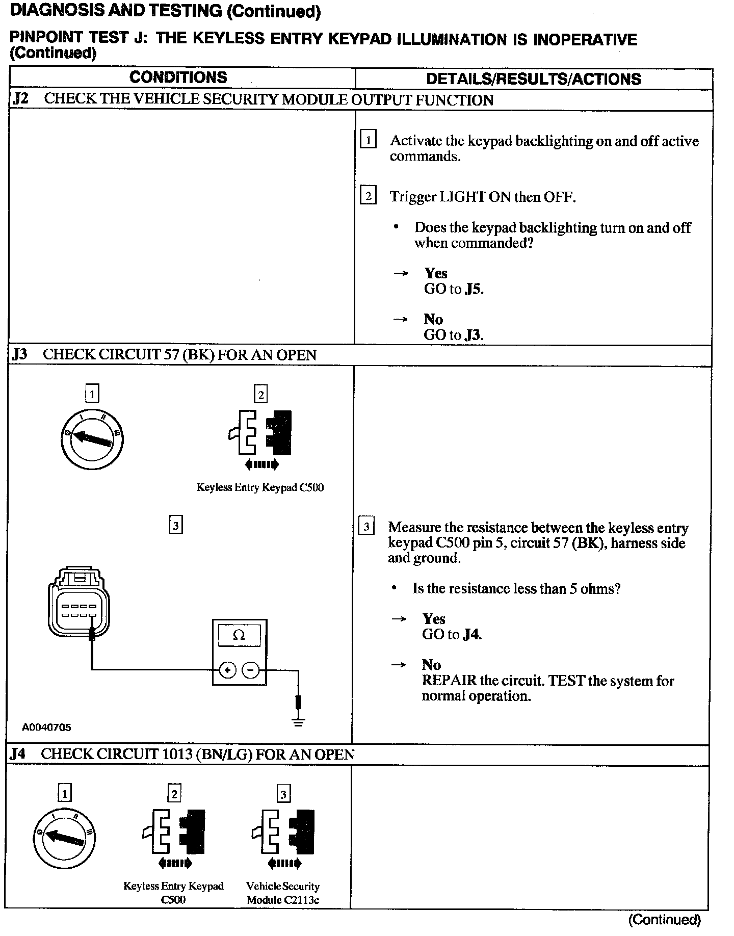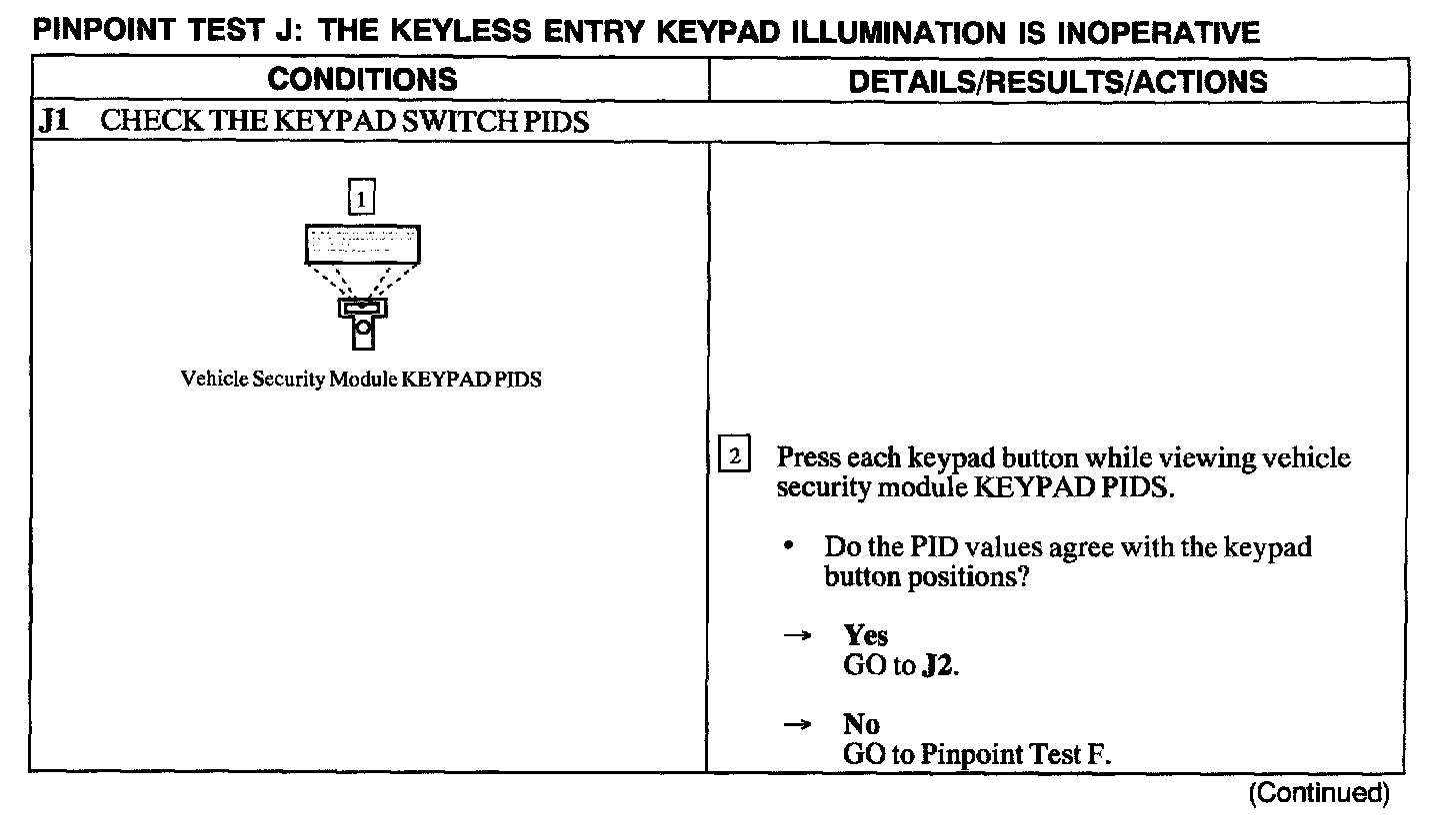 Test J: Keyless Entry Keypad Illumination Is Inoperative
