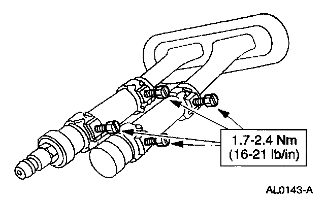 3. Install a short piece of heater water hose, approximately 101 mm (4 inches) long on each heater core tube.